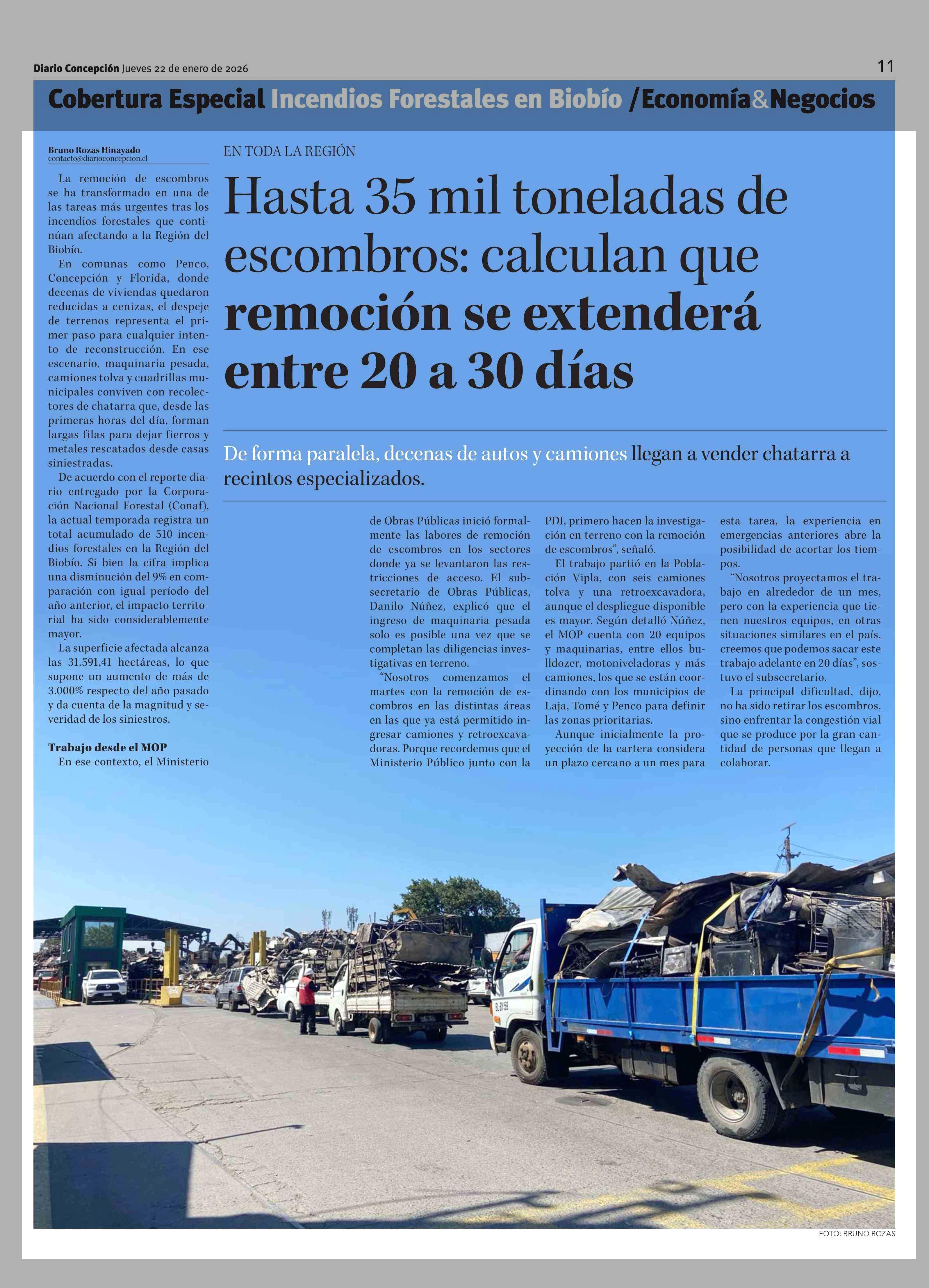 Título: Hasta 35 mil toneladas de escombros: calculan que remoción se extenderá entre 20 a 30 días