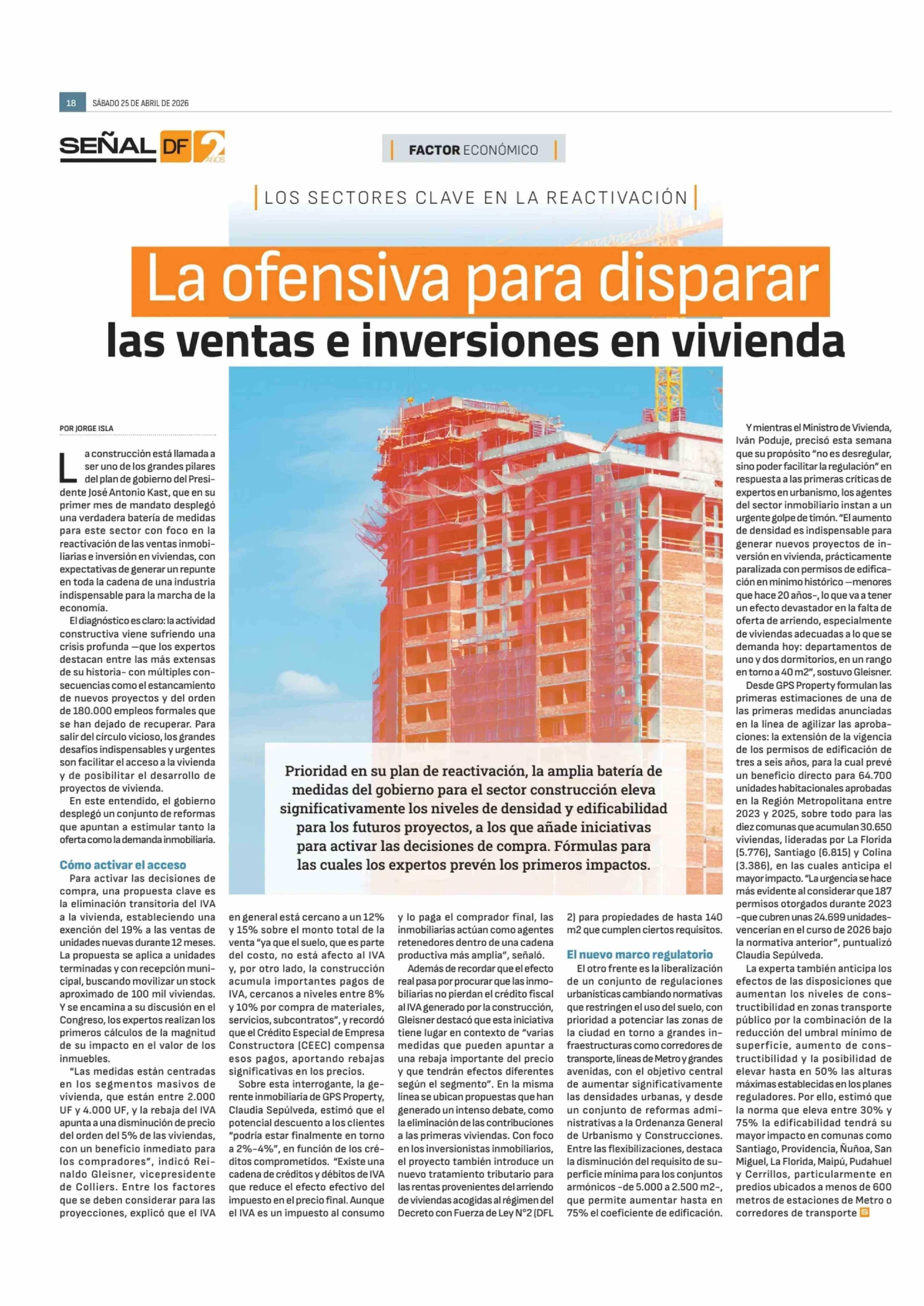 La ofensiva para disparar las ventas e inversiones en vivienda 25-04-2026 Diario Financiero |
