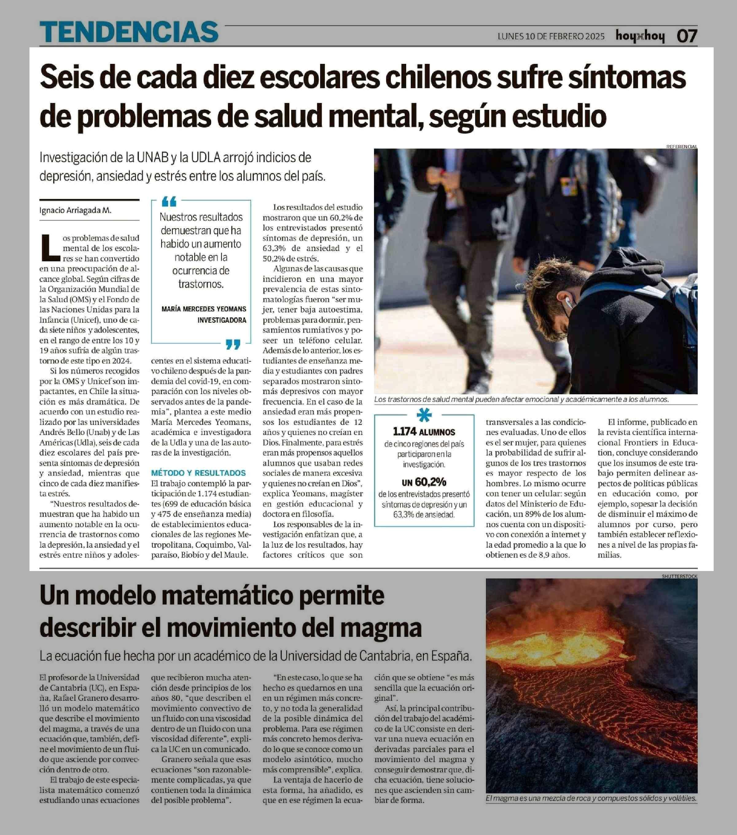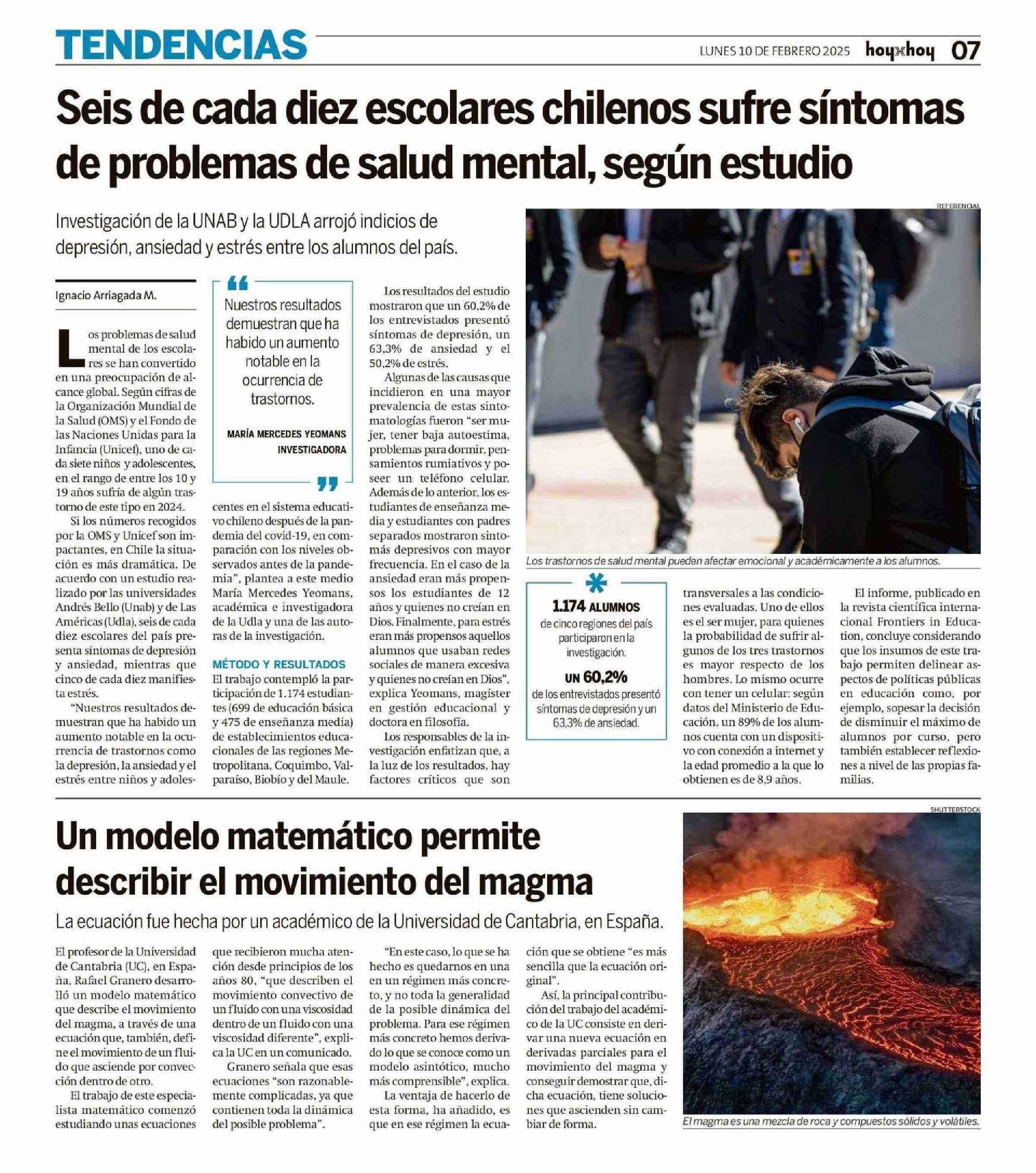 Seis de cada diez escolares chilenos sufre síntomas de problemas de salud mental, según estudio 10-02-2025 Hoy x Hoy Concepción |