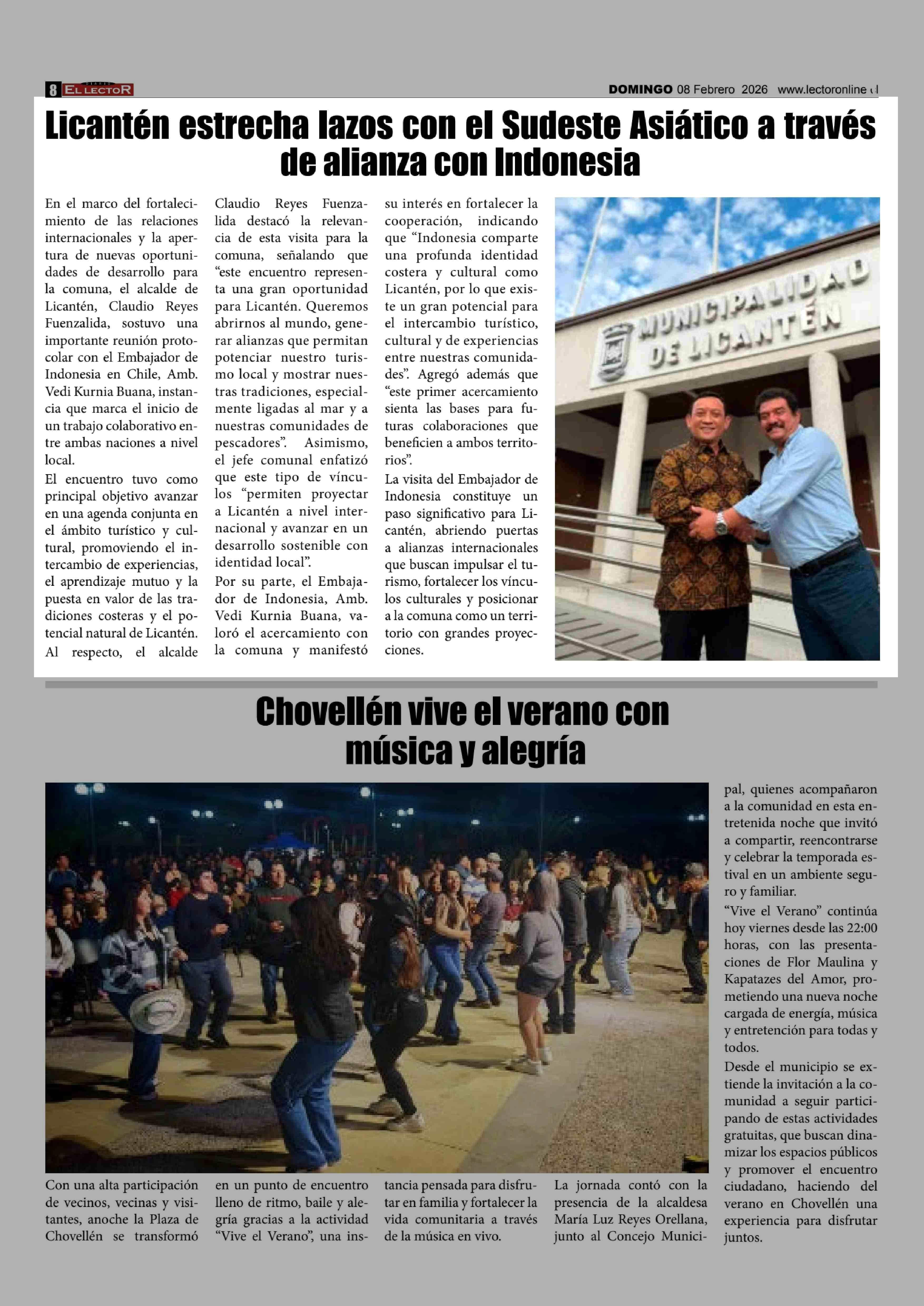Licantén estrecha lazos con el Sudeste Asiático a través de alianza con Indonesia 08-02-2026 El Lector |