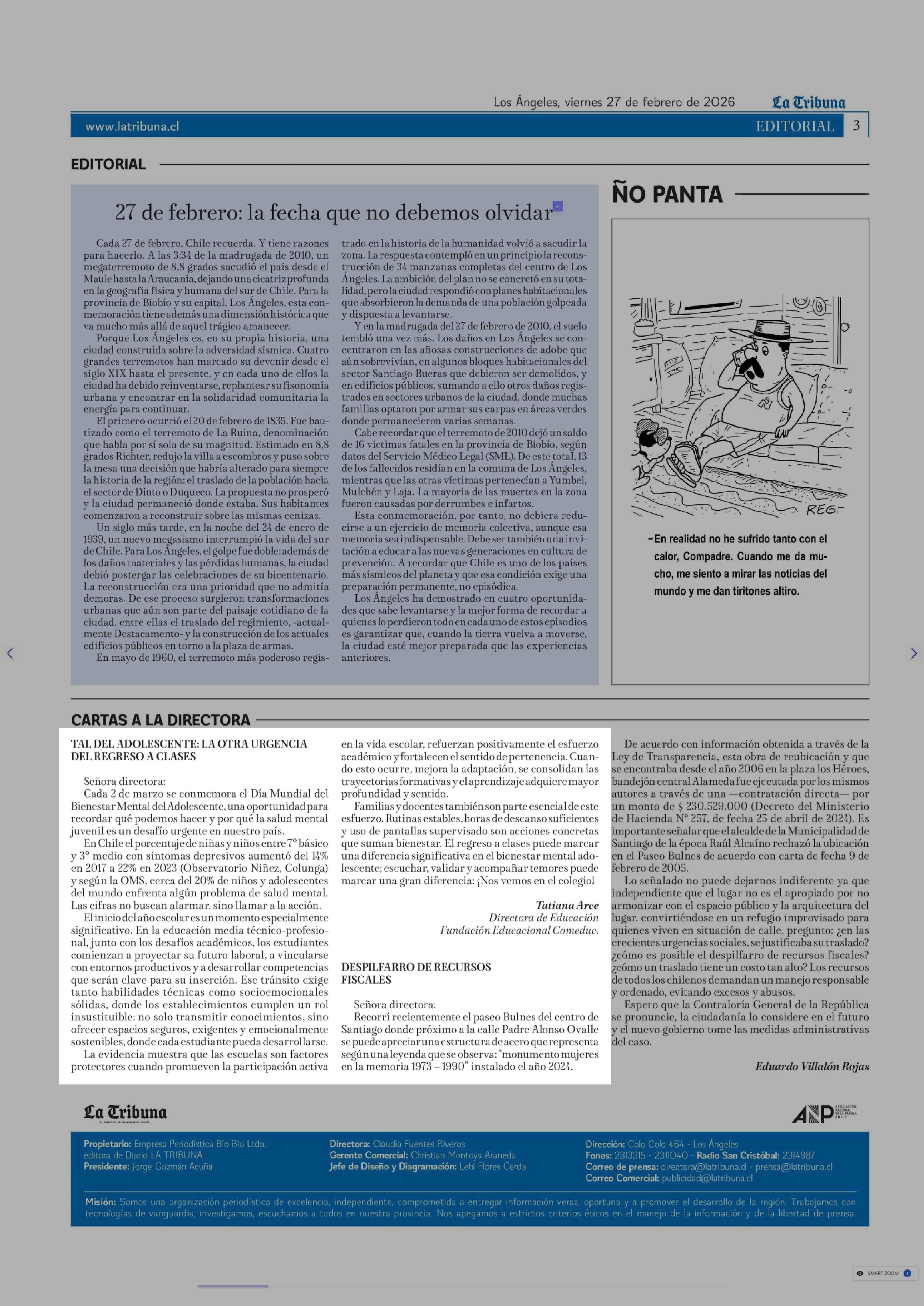 Cartas: TAL DEL ADOLESCENTE: LA OTRA URGENCIA DEL REGRESO A CLASES 27-02-2026 La Tribuna |