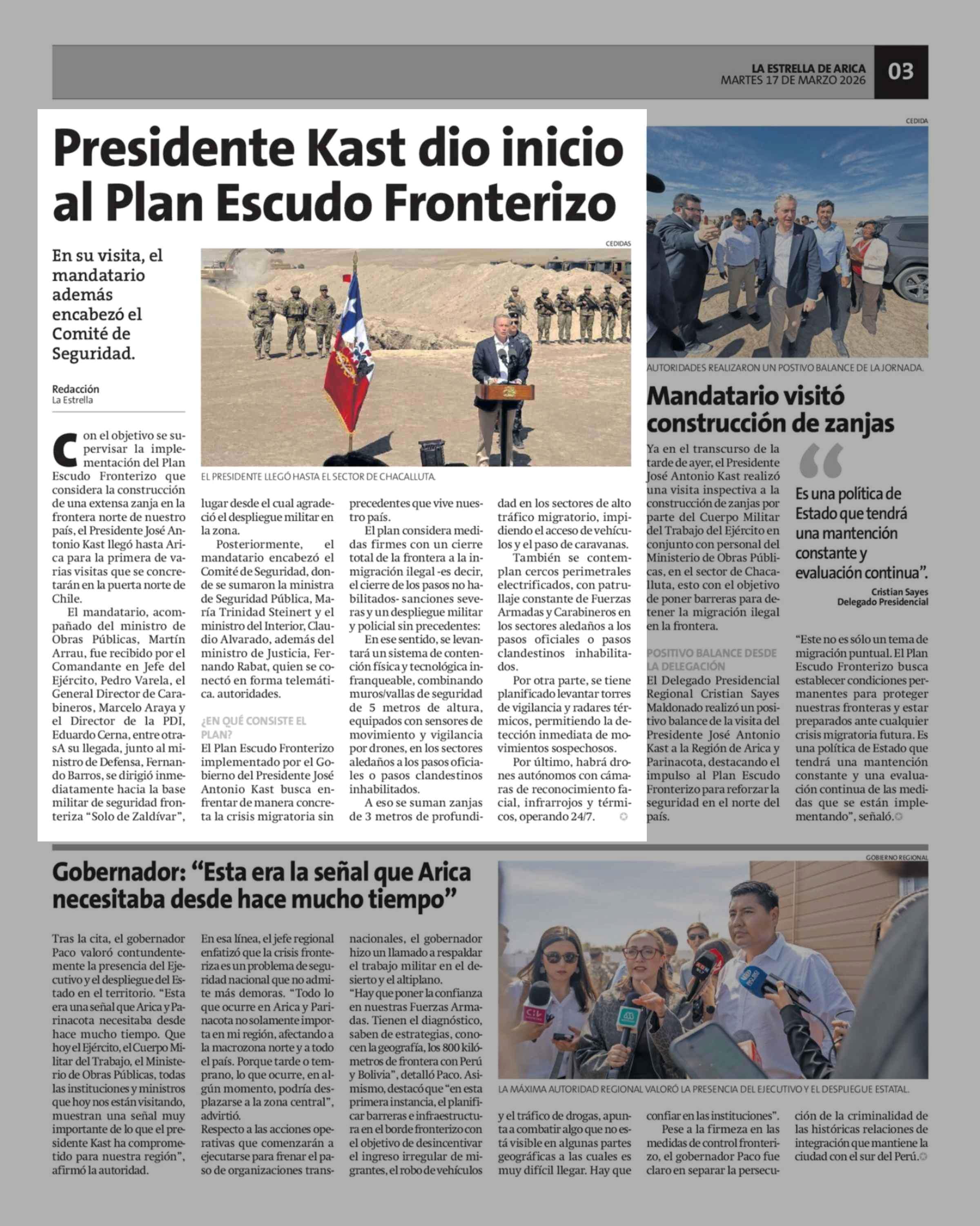 Fecha: 17-03-2026 Sector: Noticia general Región: Región de Arica y Parinacota