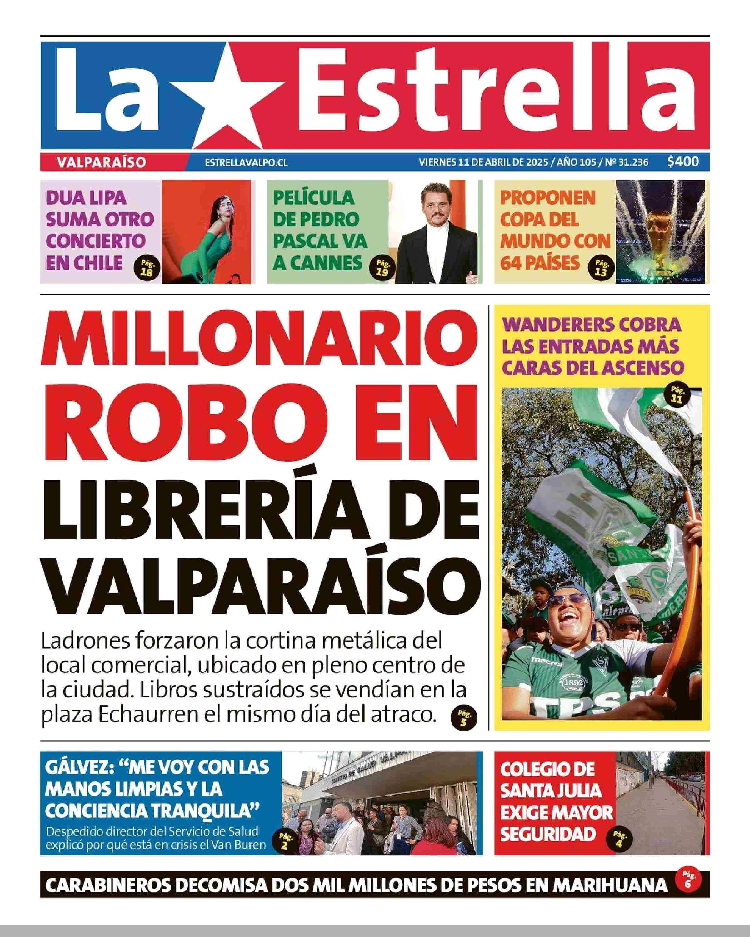 PORTADA LA ESTRELLA DE VALPARAÍSO - CHILE 11-04-2025 La Estrella de Valparaíso |