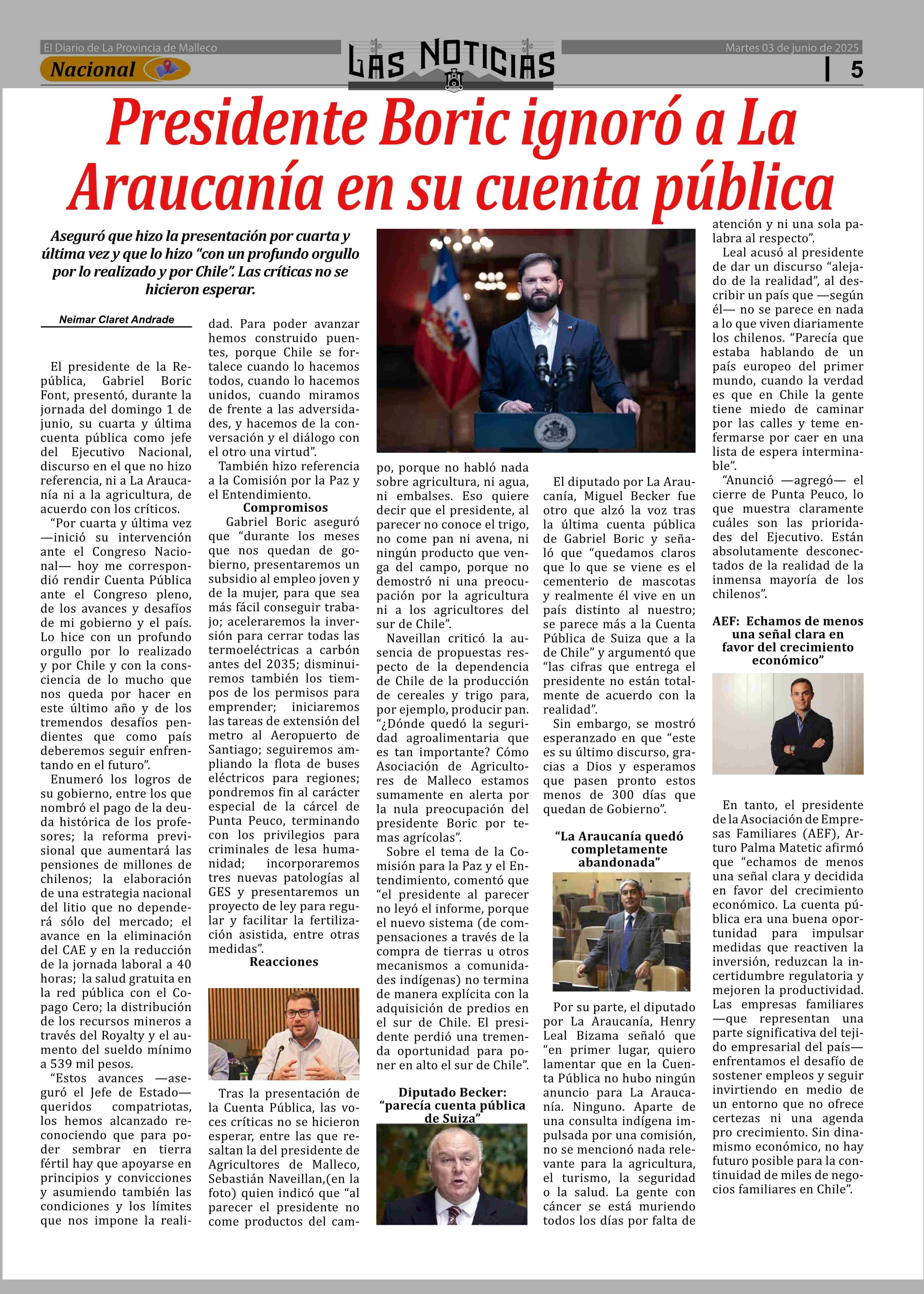 Presidente Boric ignoró a La Araucanía en su cuenta pública 03-06-2025 Las Noticias |