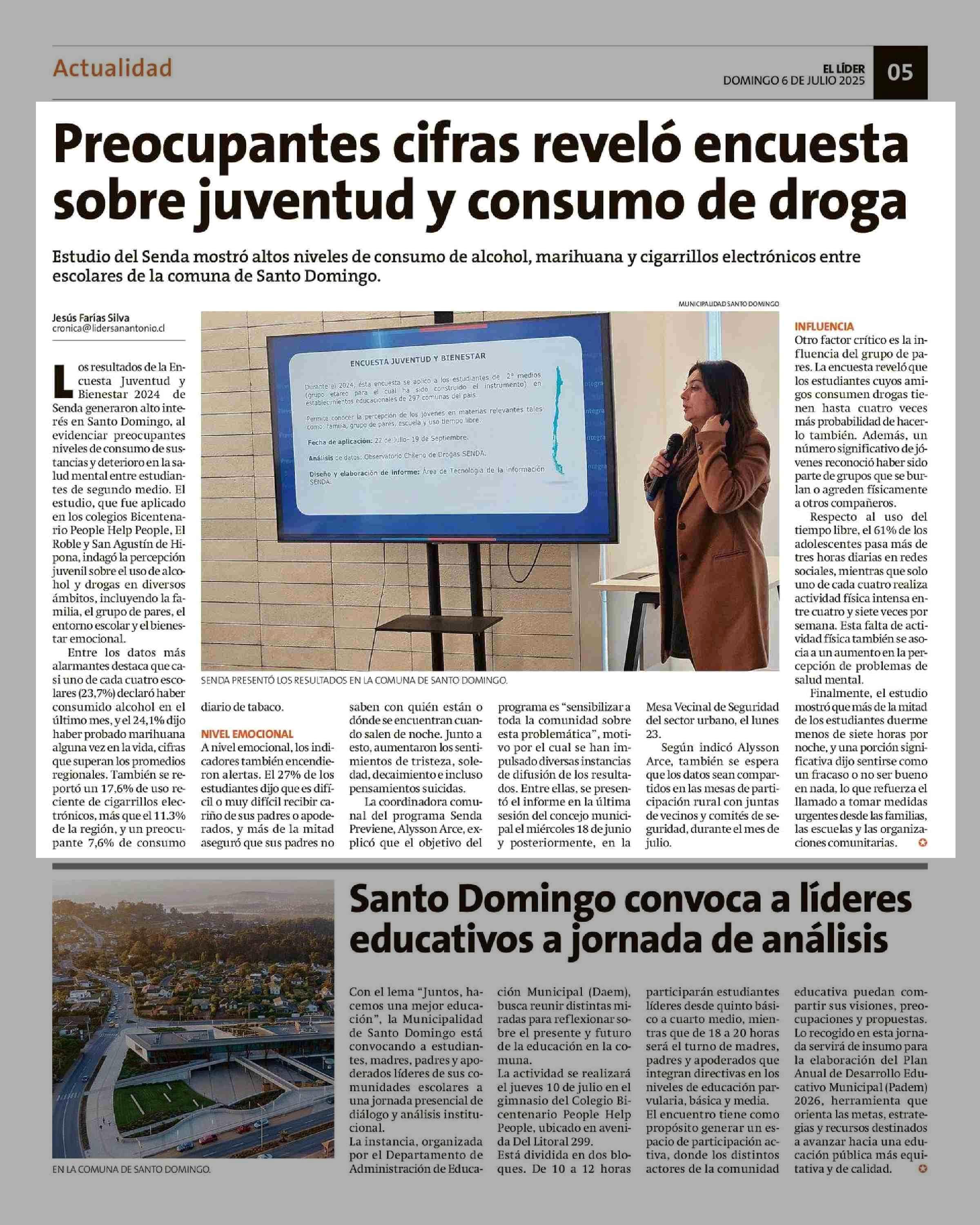 Preocupantes cifras reveló encuesta sobre juventud y consumo de droga 06-07-2025 El Líder |