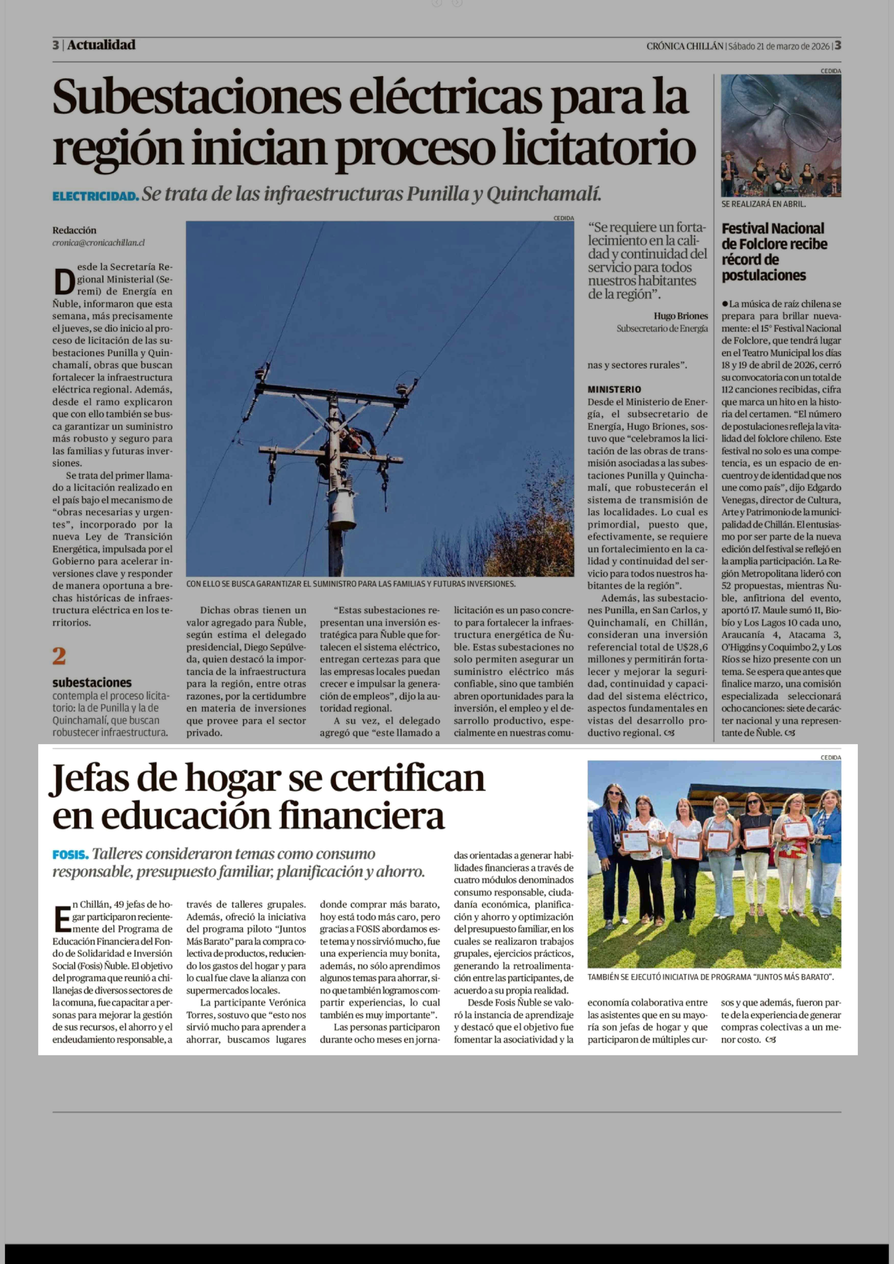 Fecha: 21-03-2026 Sector: Noticia general Región: Región del Ñuble