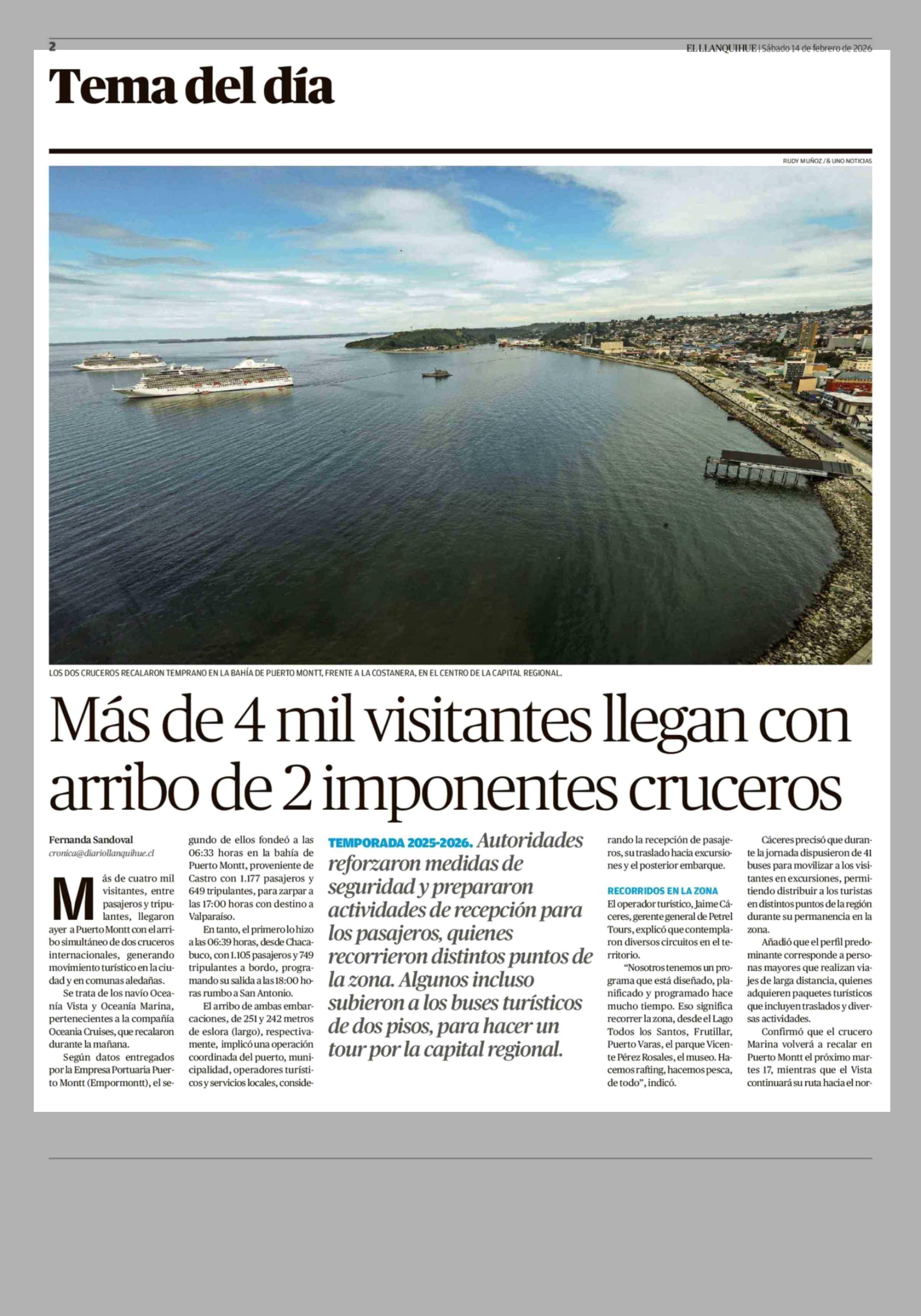 Más de 4 mil visitantes llegan con arribo de 2 imponentes cruceros 14-02-2026 El Llanquihue |