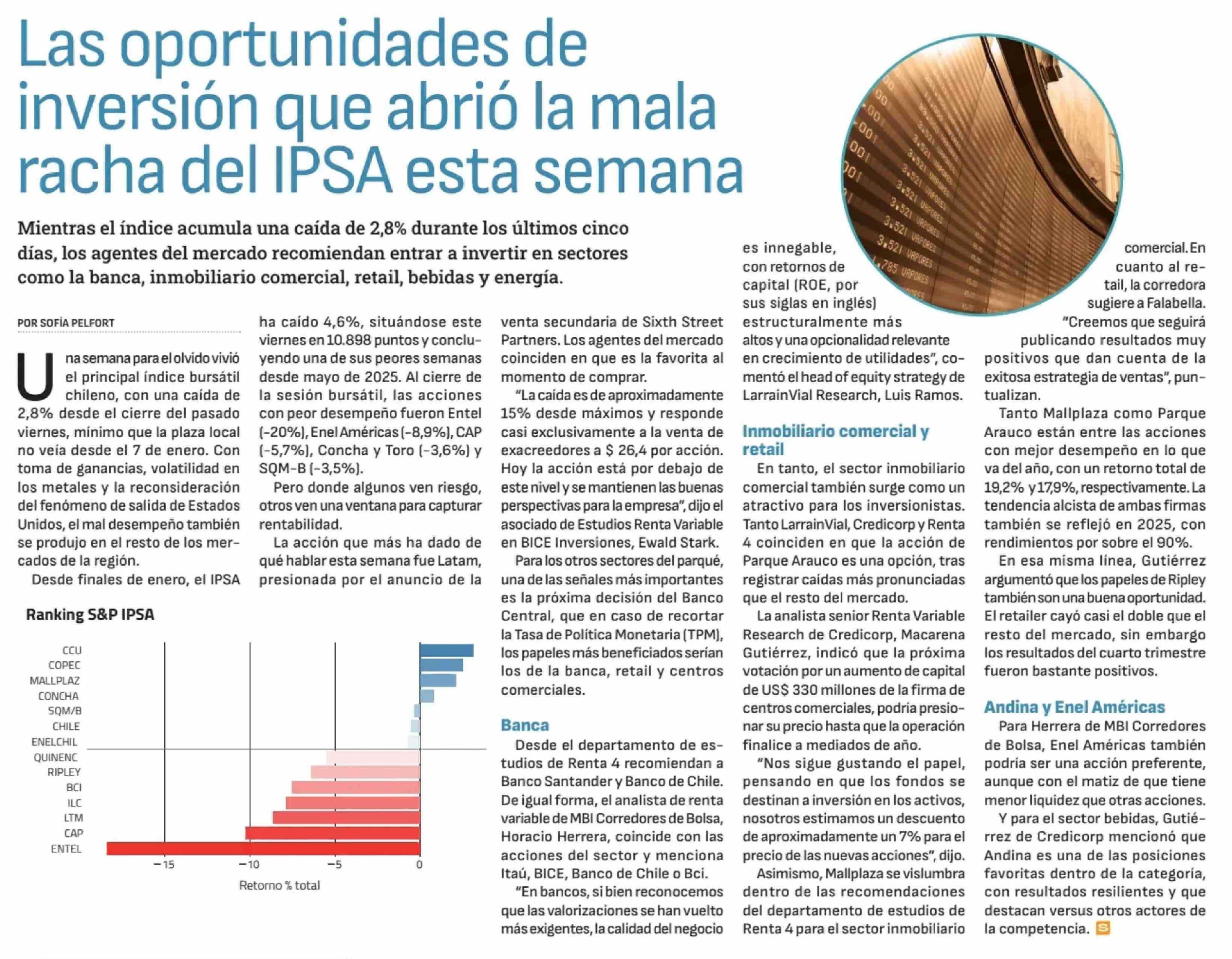 Las oportunidades de inversión que abrió la mala racha del IPSA esta semana 14-02-2026 Diario Financiero |