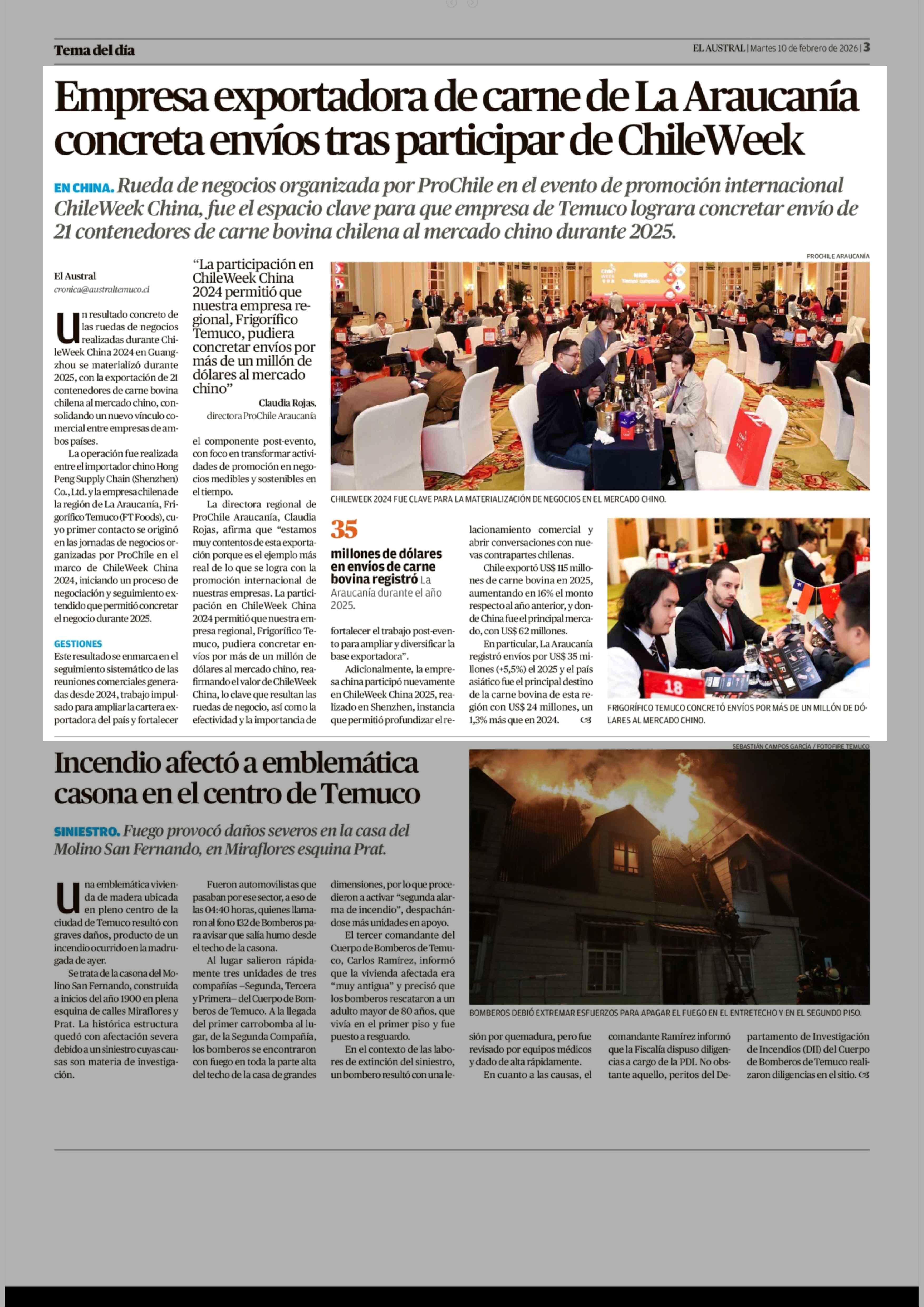 Empresa exportadora de carne de La Araucanía concreta envíos tras participar de ChileWeek 10-02-2026 El Austral de la Araucanía |