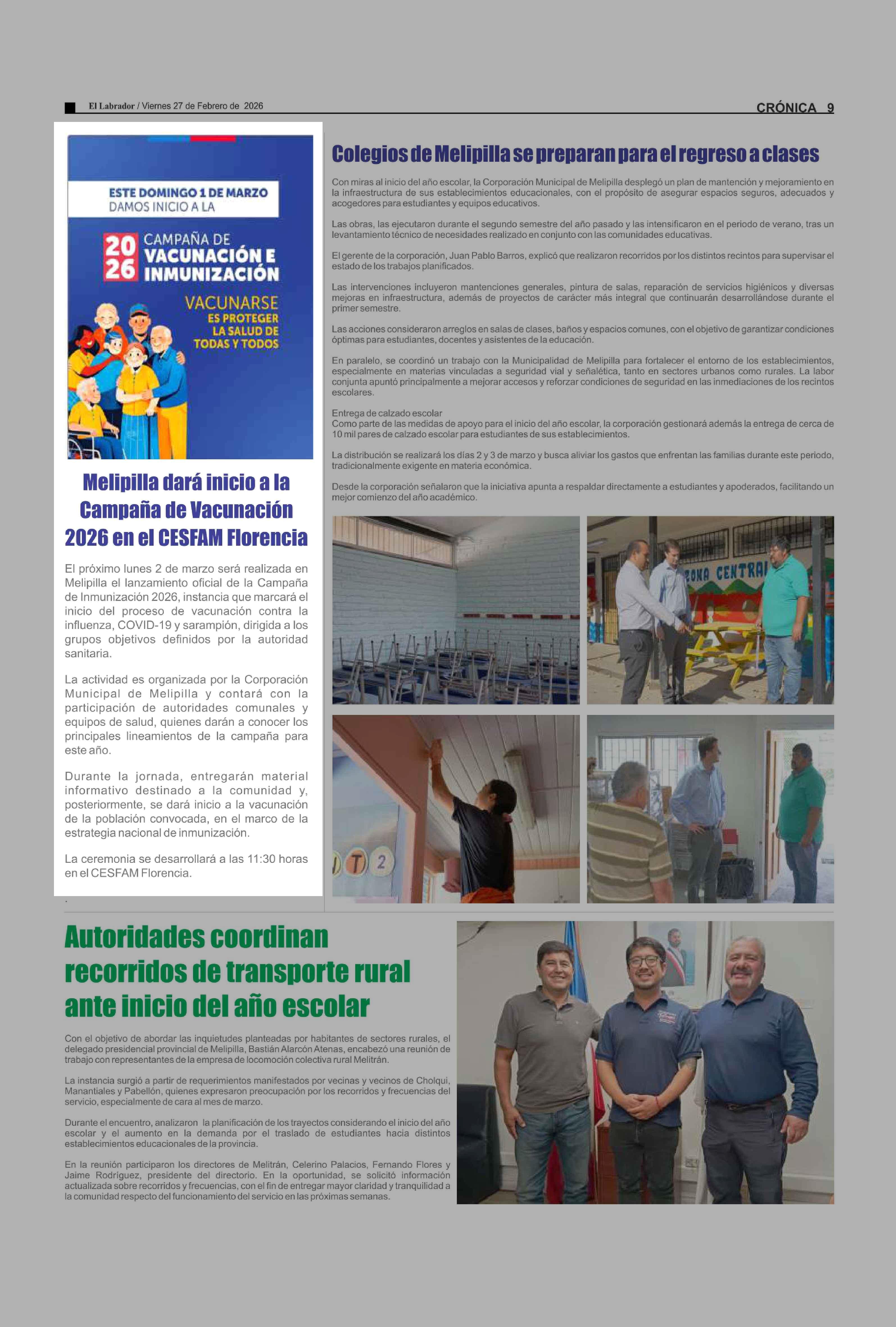 Melipilla dará inicio a la Campaña de Vacunación 2026 en el CESFAM Florencia 27-02-2026 El Labrador |