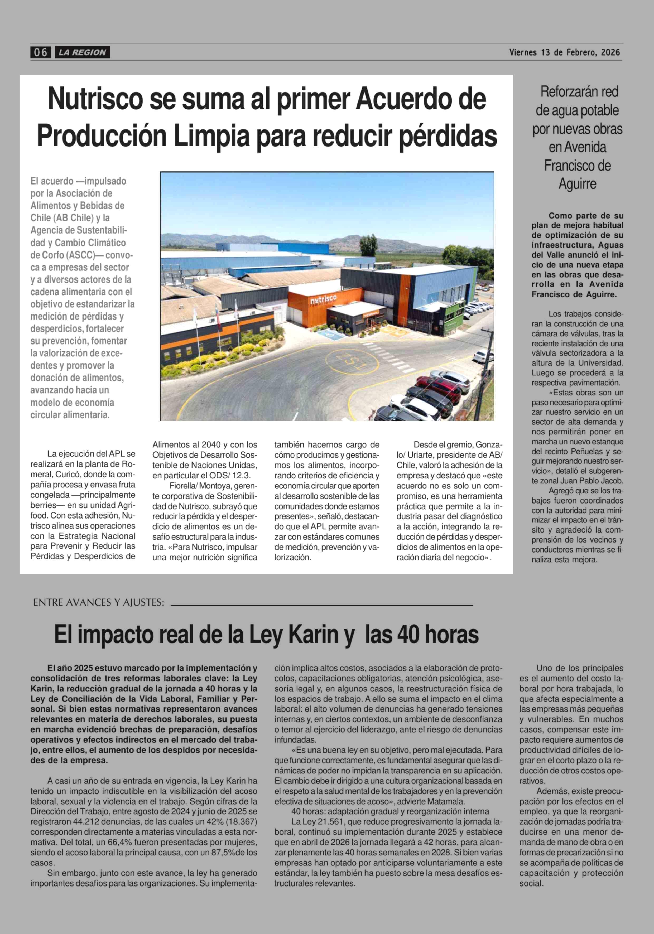 Nutrisco se suma al primer Acuerdo de Producción Limpia para reducir pérdidas 13-02-2026 Diario la Región |