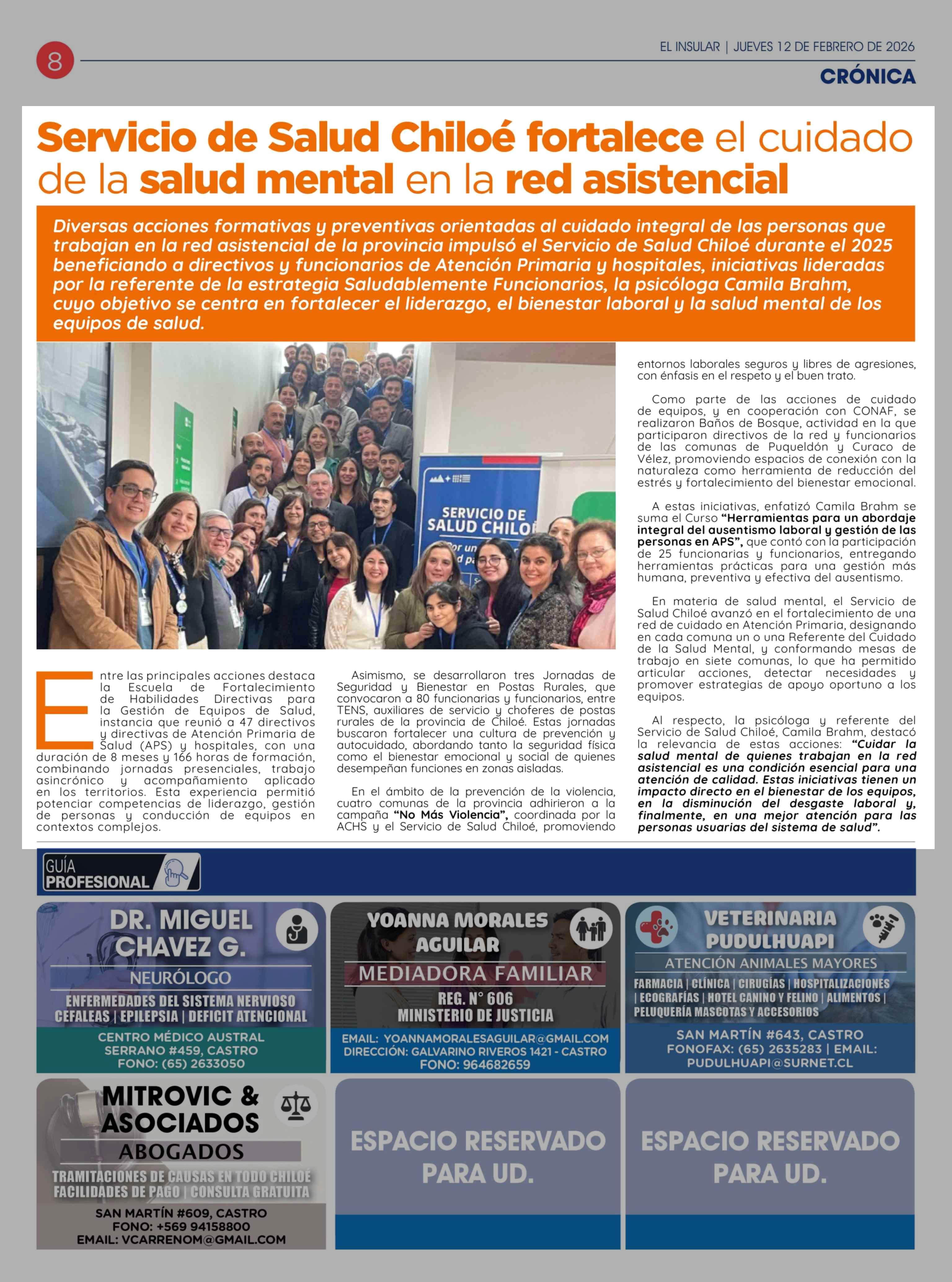 Servicio de Salud Chiloé fortalece el cuidado de la salud mental en la red asistencial 12-02-2026 El Insular |