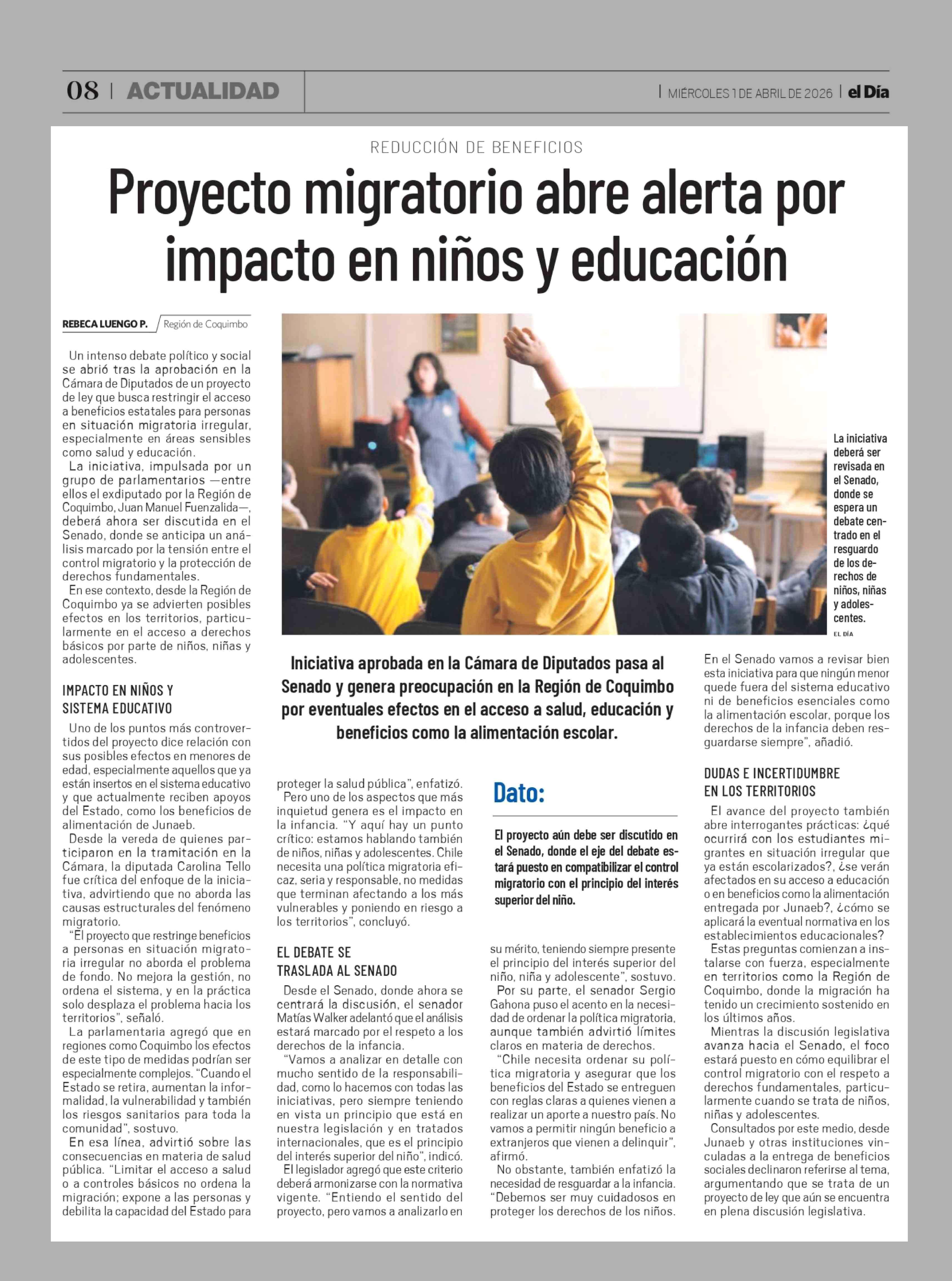Proyecto migratorio abre alerta por impacto en niños y educación 01-04-2026 El Día |