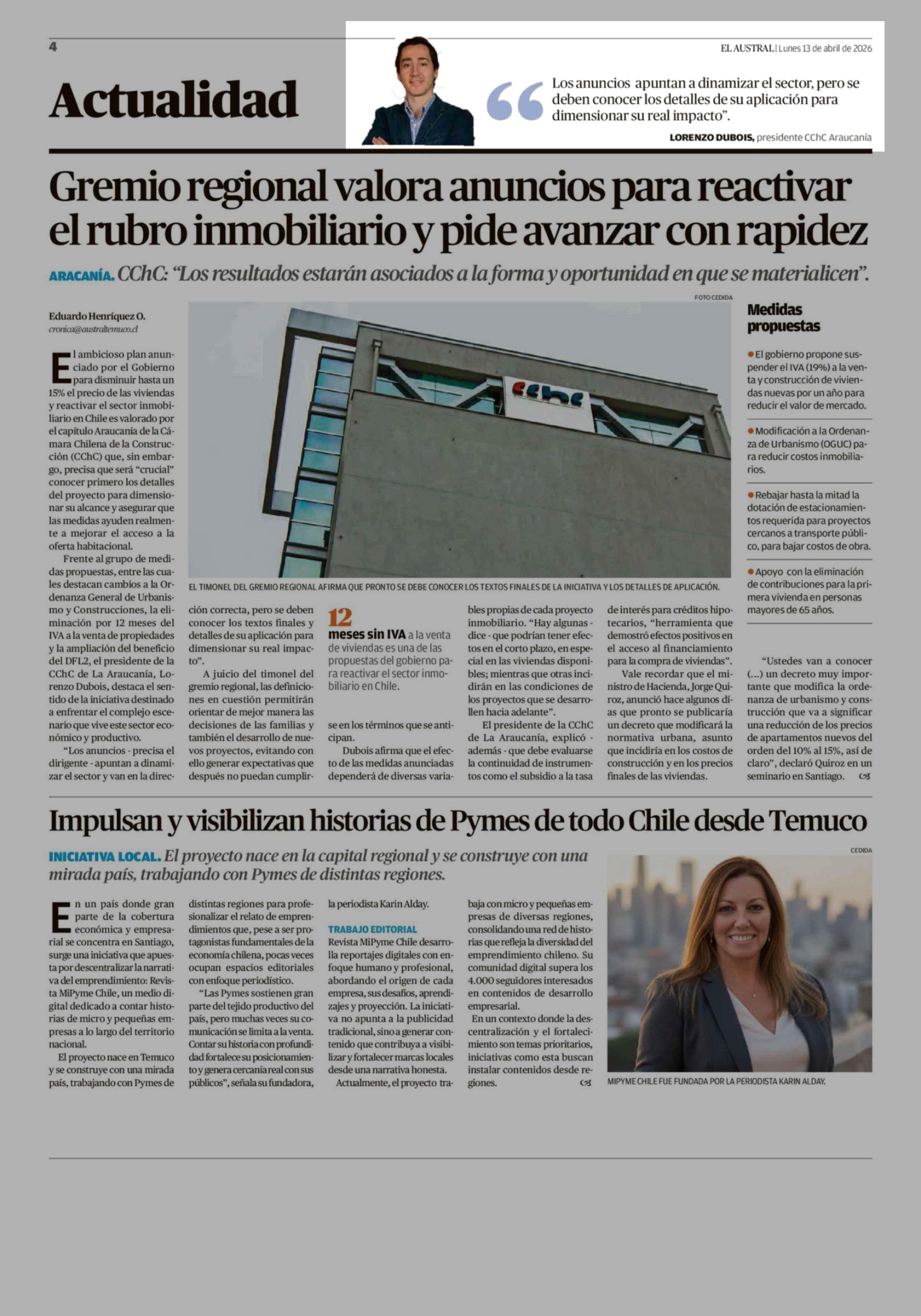 Fecha: 13-04-2026 Sector: Noticia general Región: Región de la Araucanía
