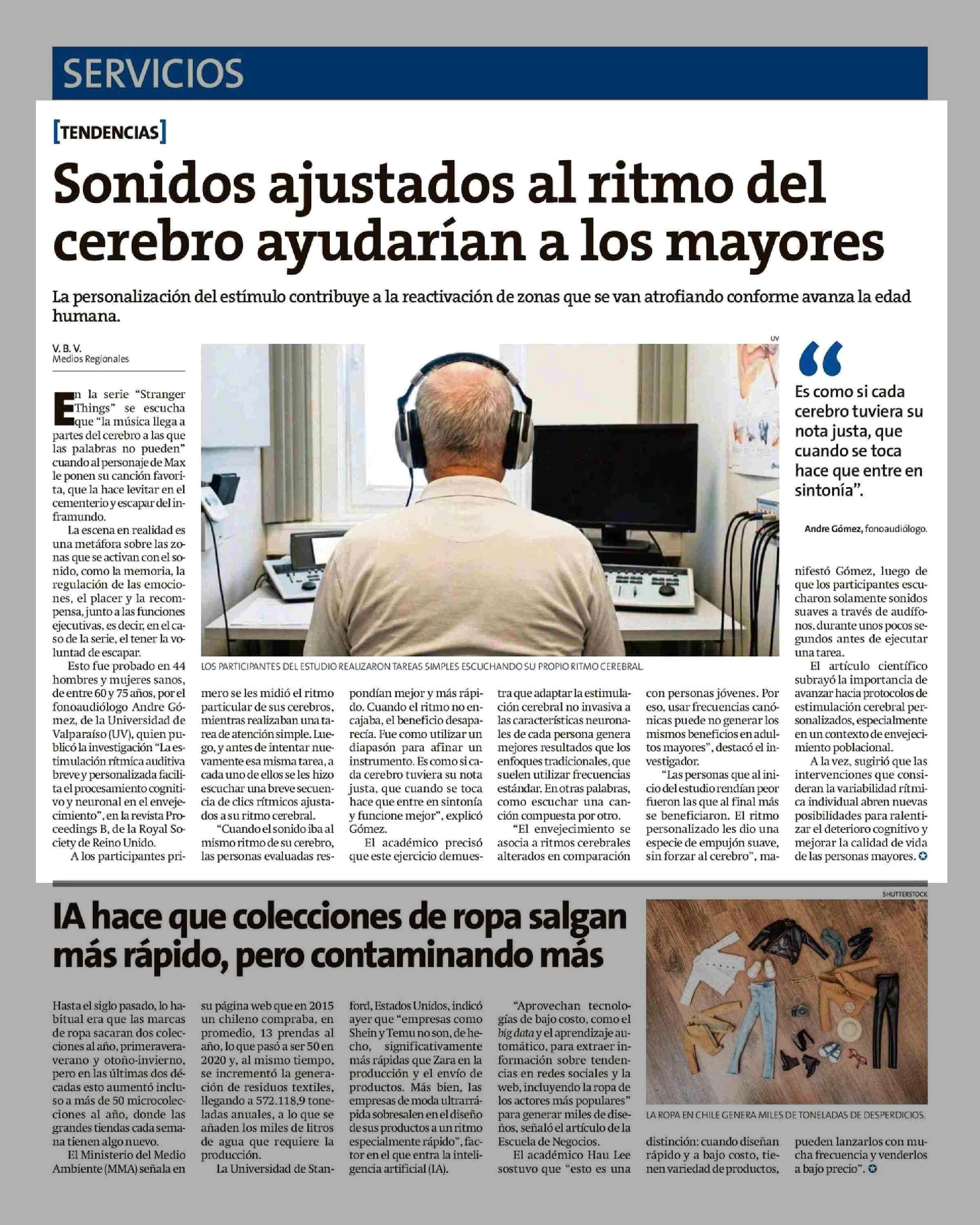 Sonidos ajustados al ritmo del cerebro ayudarían a los mayores 24-01-2026 La Estrella de Chiloé |