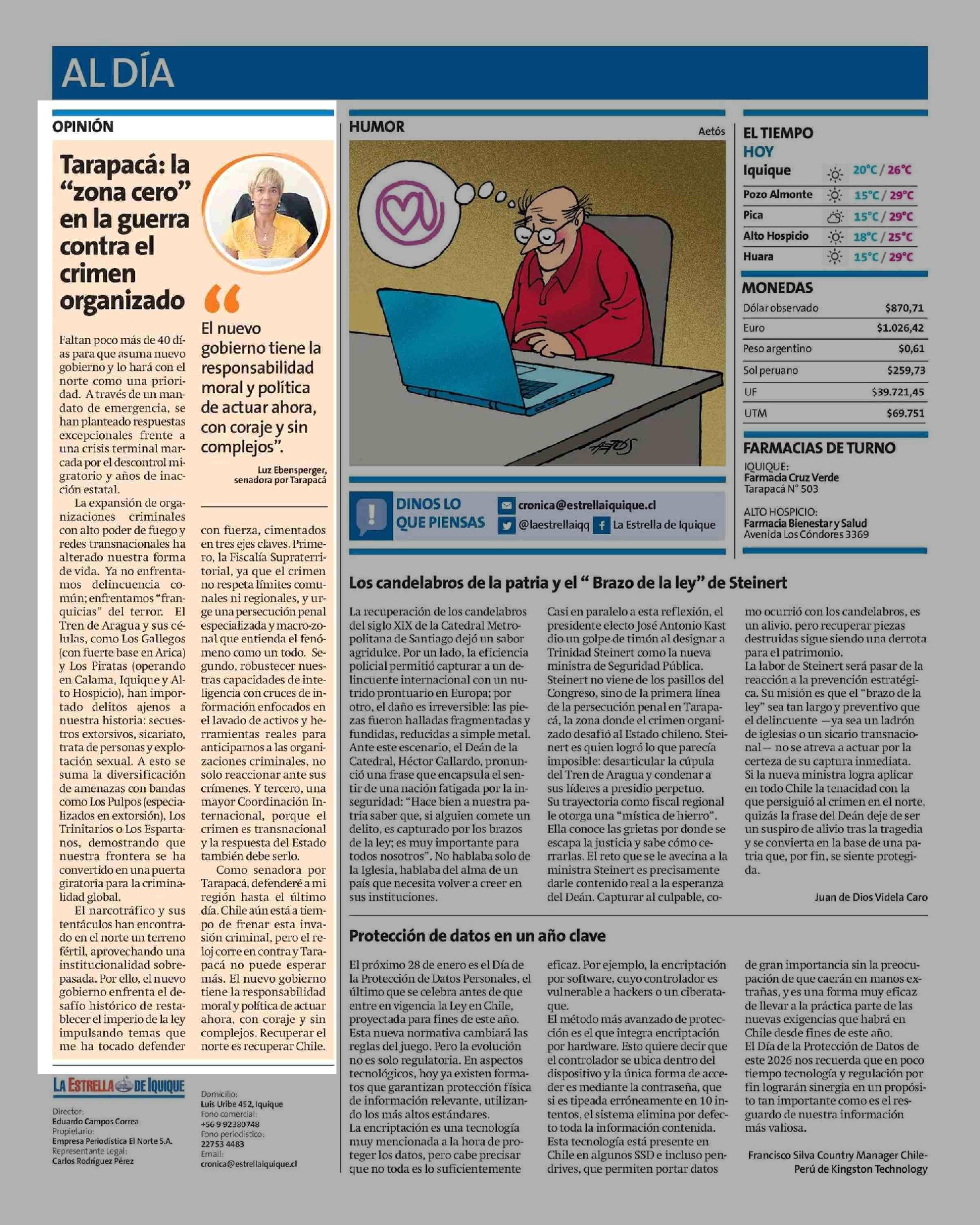 Fecha: 25-01-2026 Sector: Columnas de Opinión Región: Región de Tarapacá