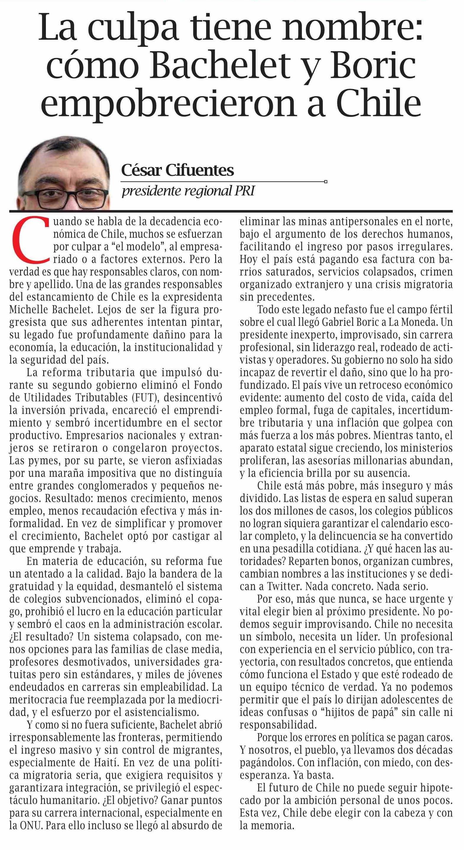 La culpa tiene nombre: cómo Bachelet y Boric empobrecieron a Chile 27-04-2025 El Pingüino |