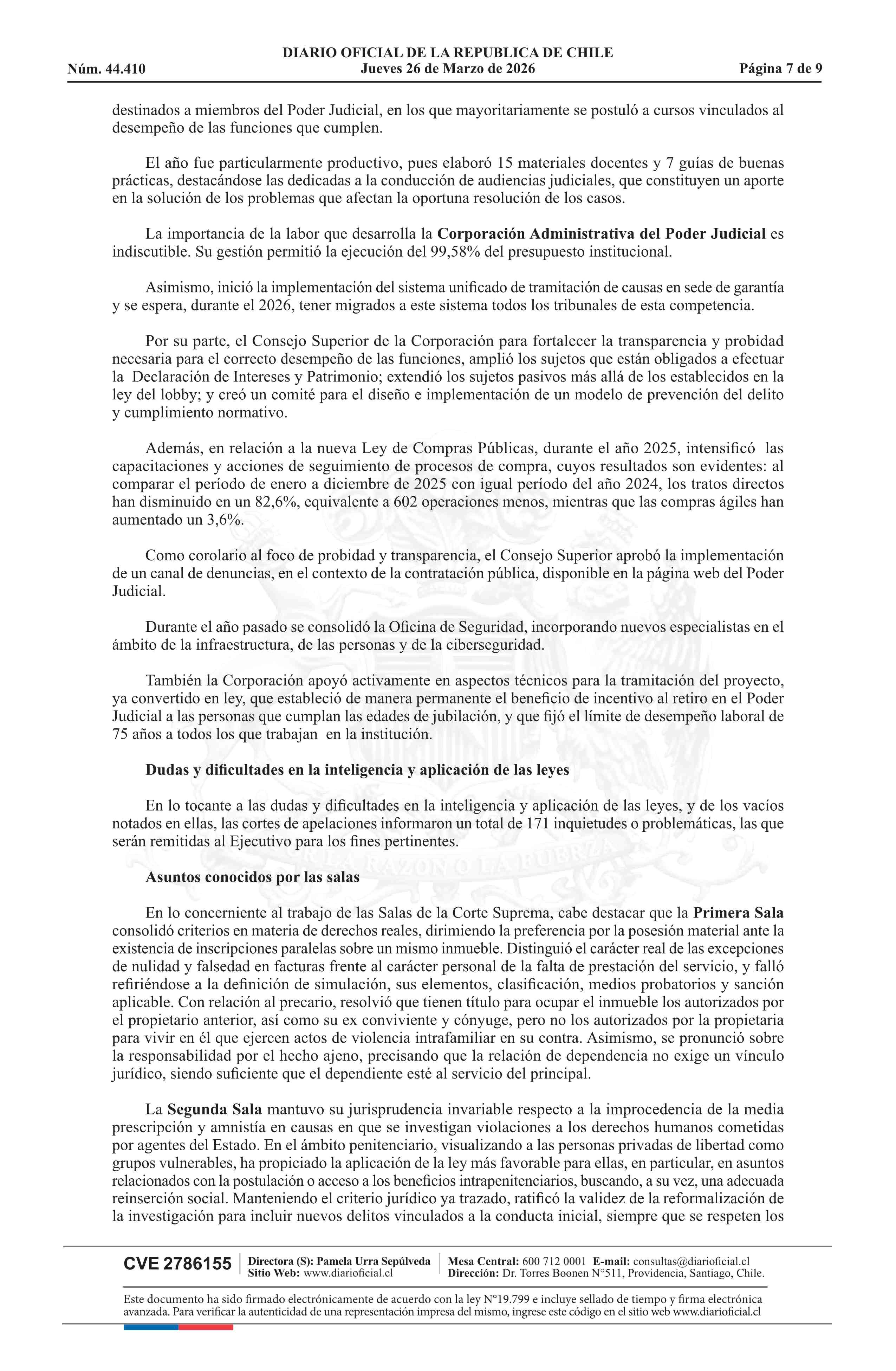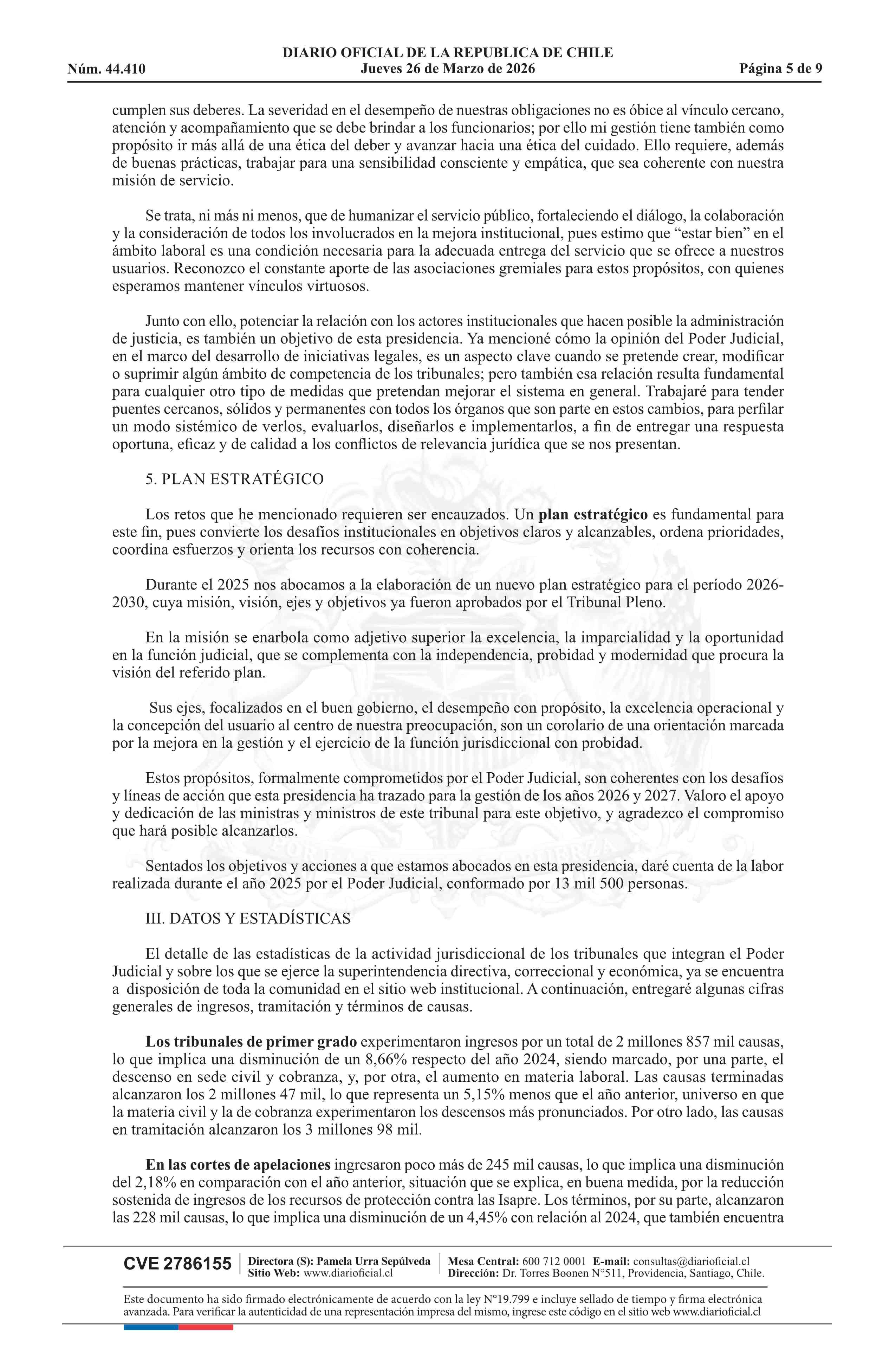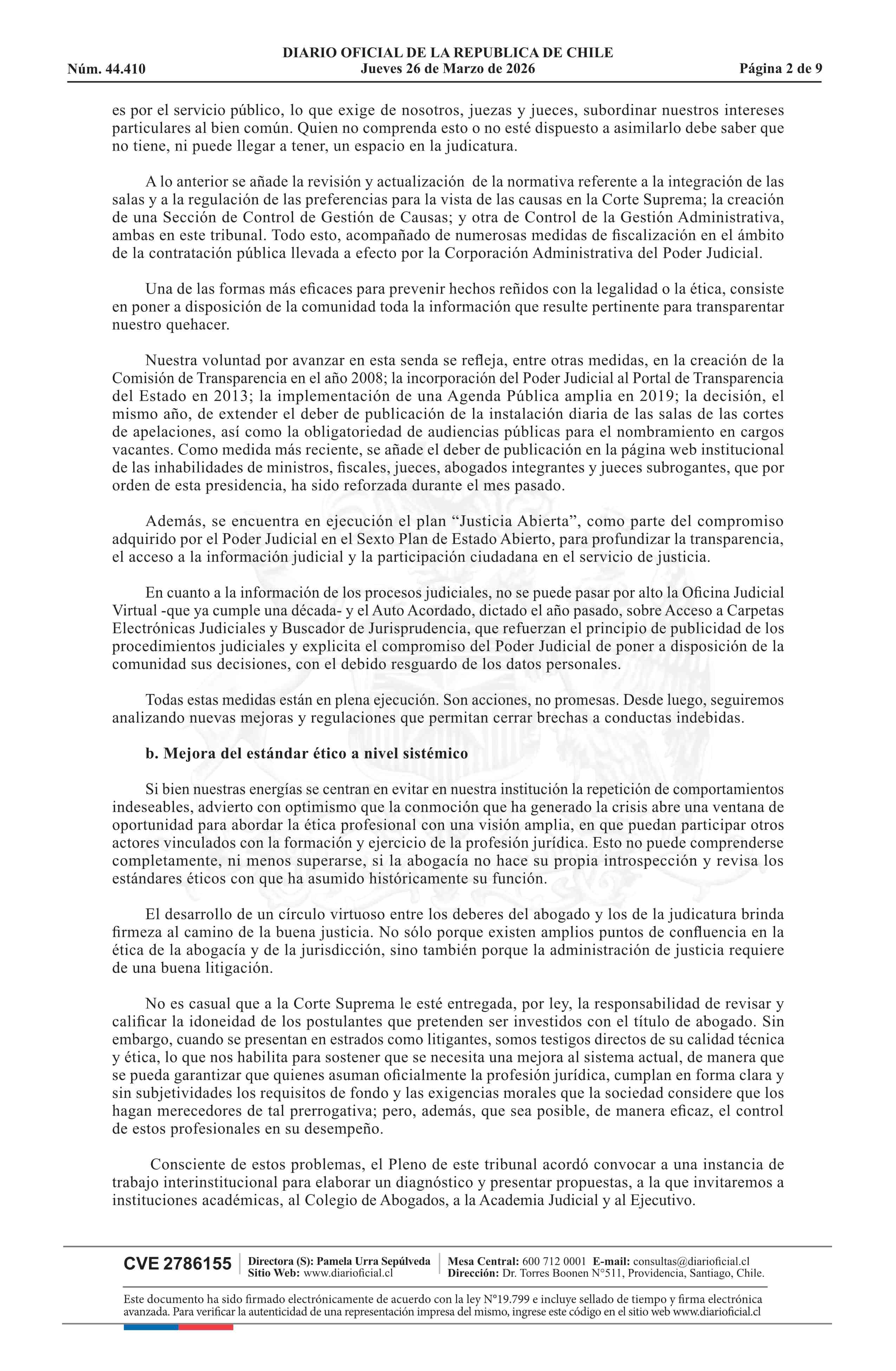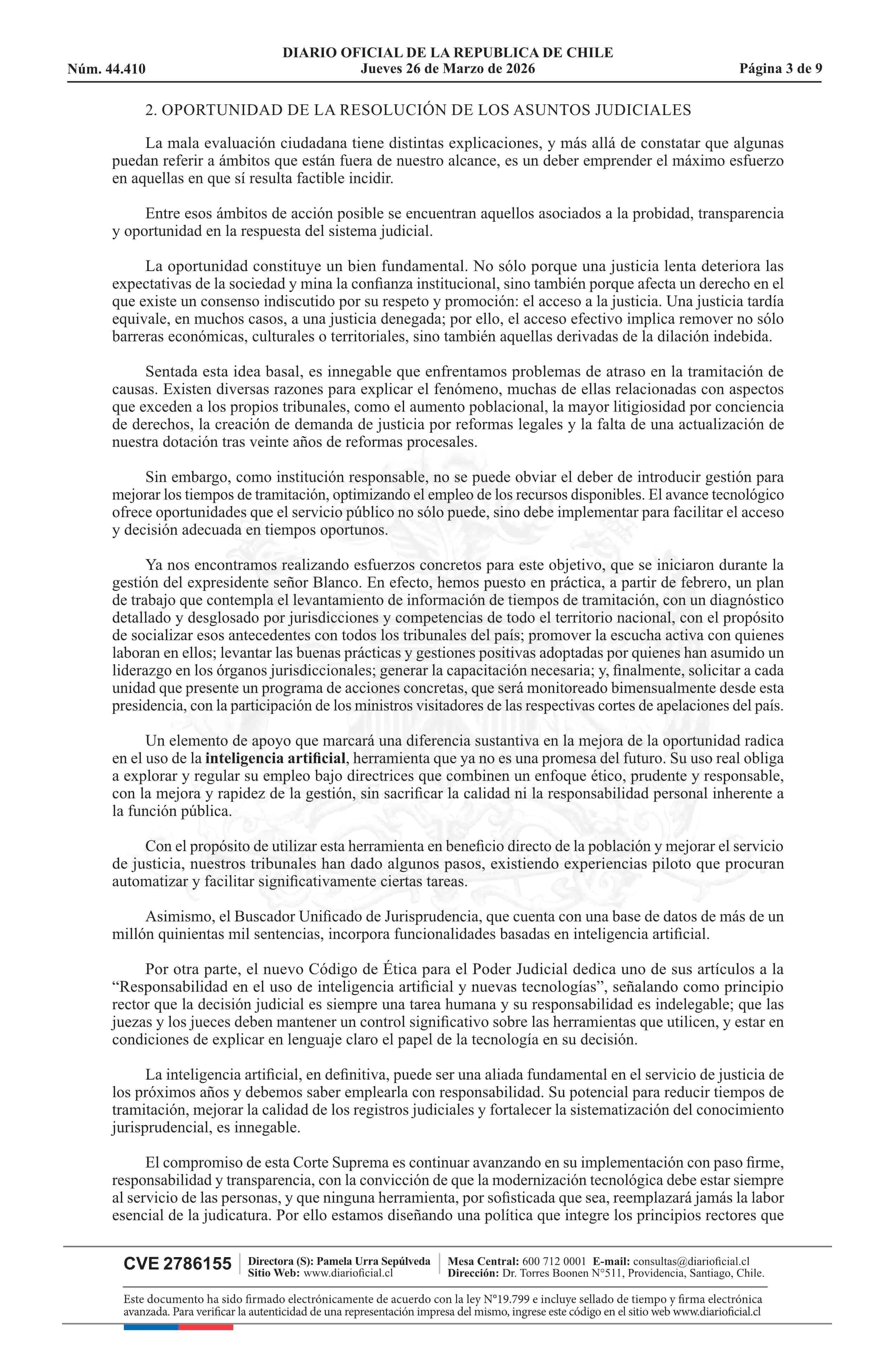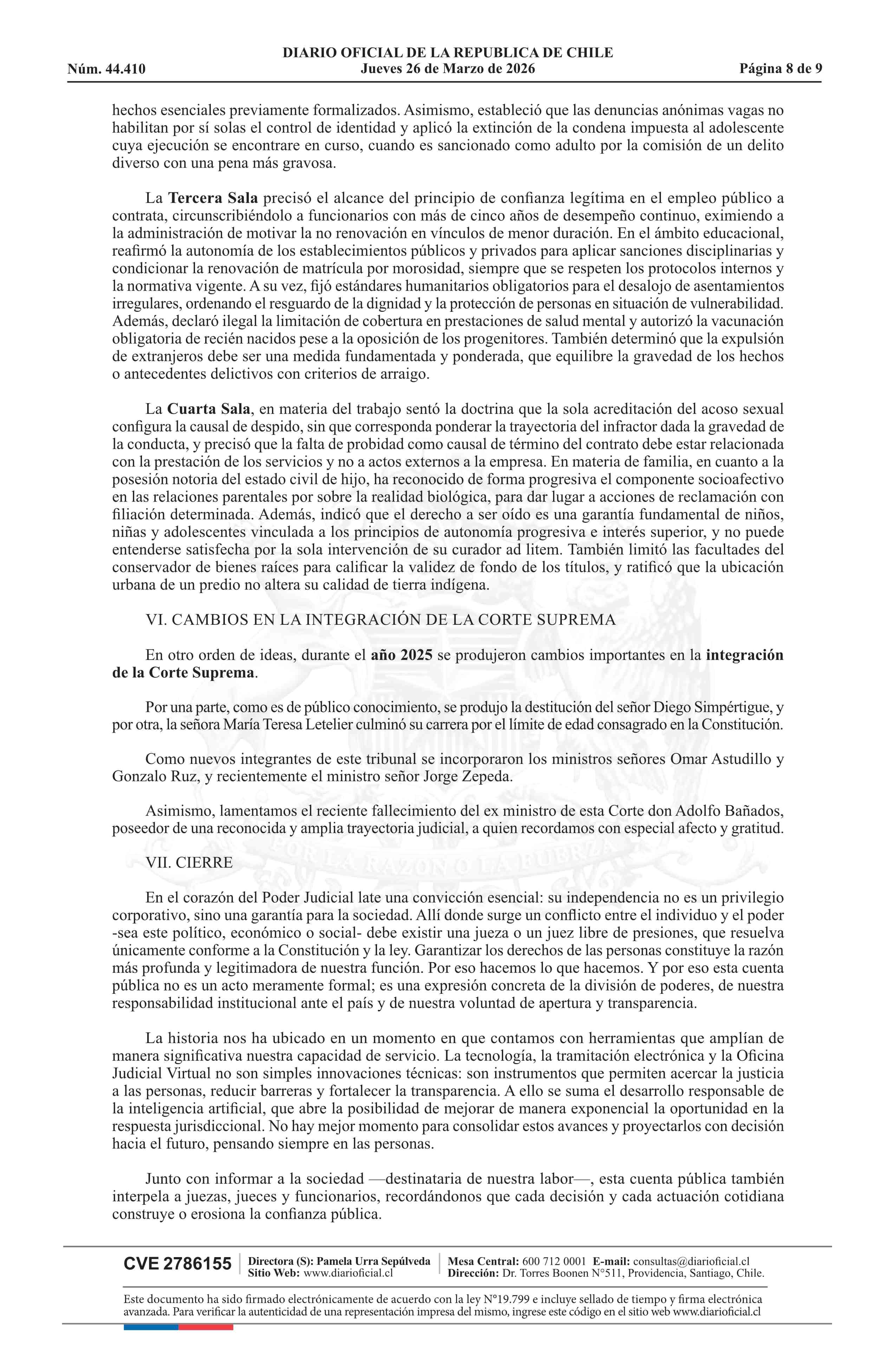 Cuenta Pública de la Presidenta de la Corte Suprema, año 2026 26-03-2026 Diario Oficial Edición Electrónica |