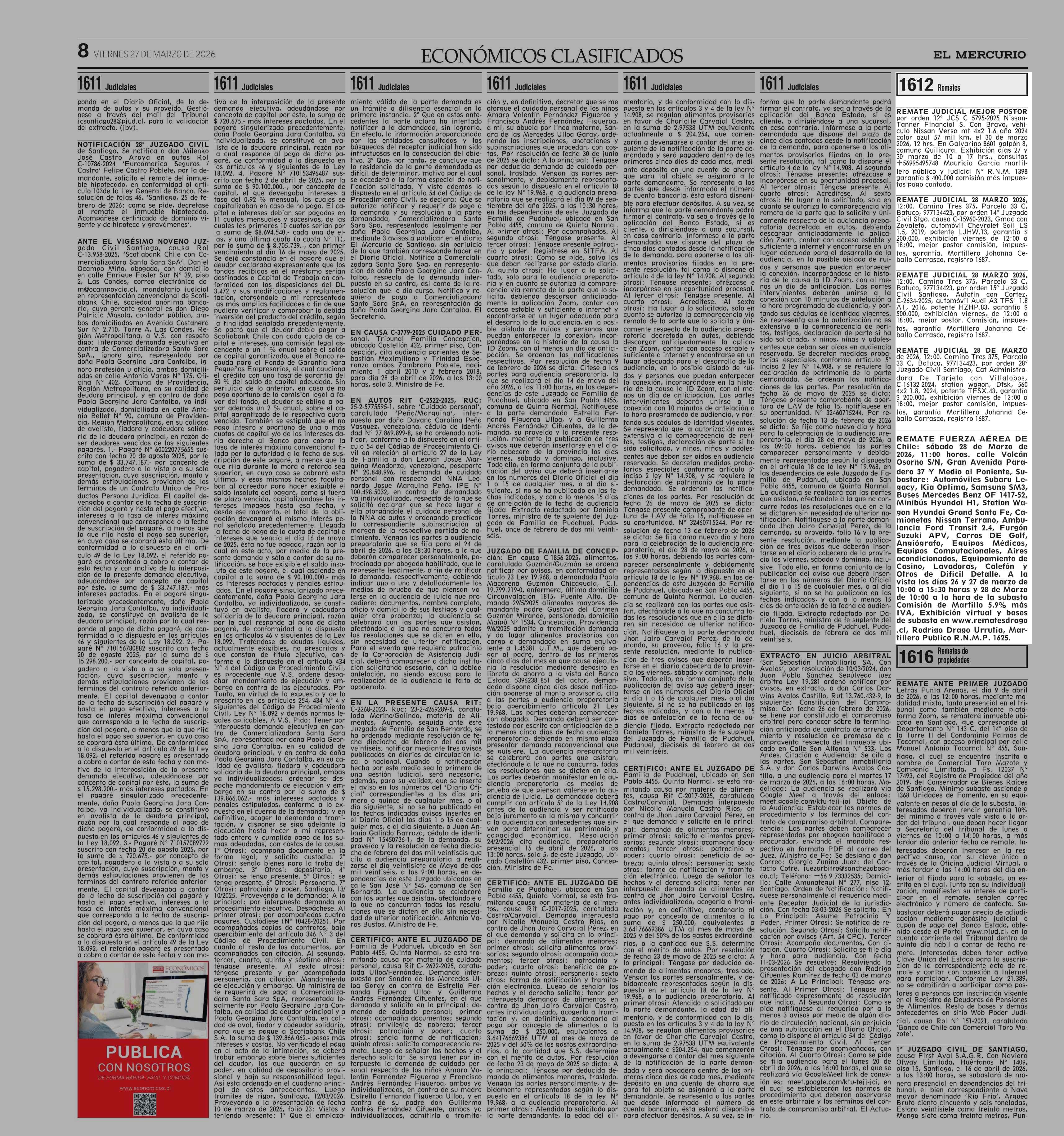 Fecha: 27-03-2026 Sector: Remates Región: Región Metropolitana de Santiago