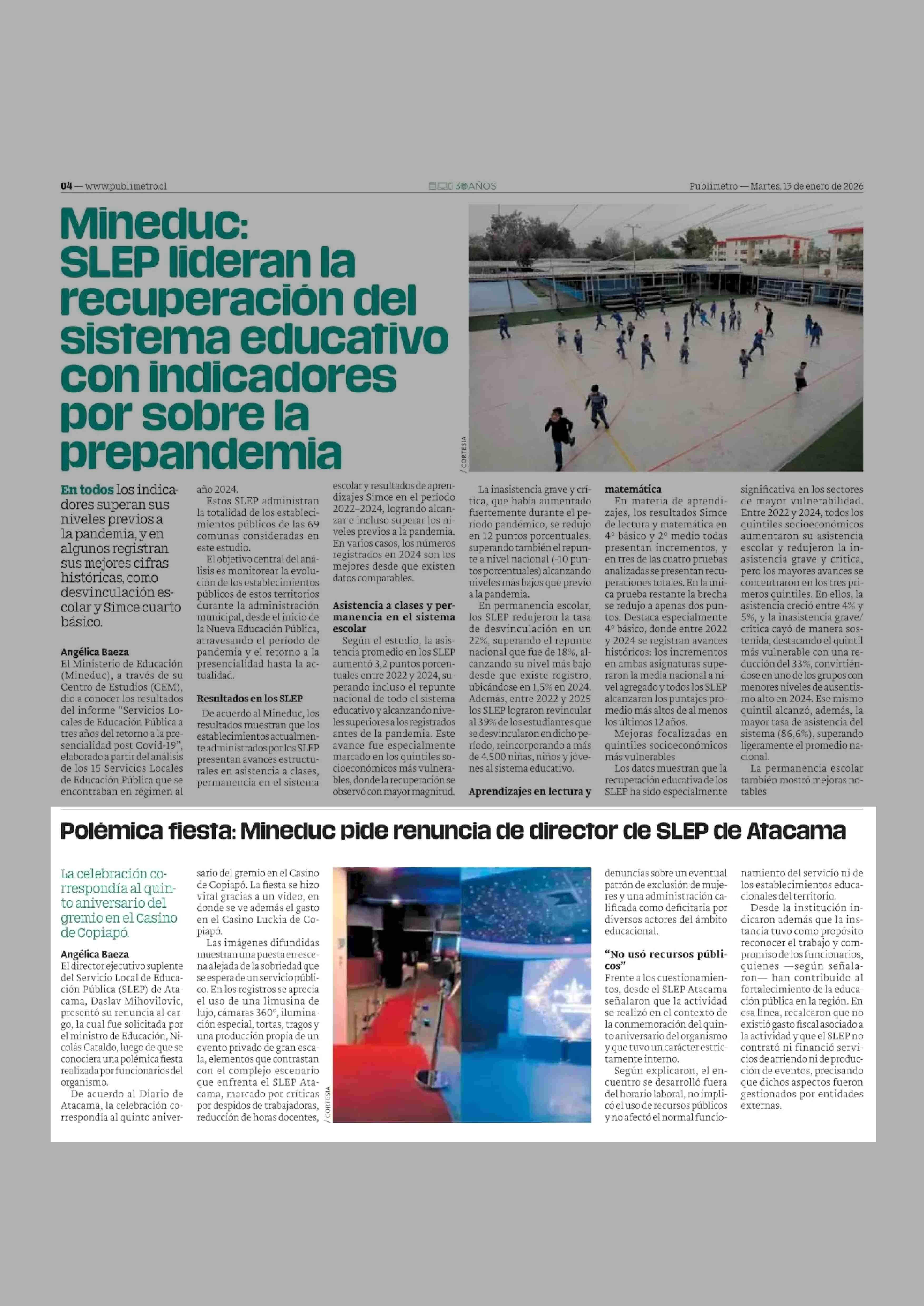 Polémica fiesta: Mineduc picde renuncia de clirector ce SLEP de Atacama 13-01-2026 Publimetro |