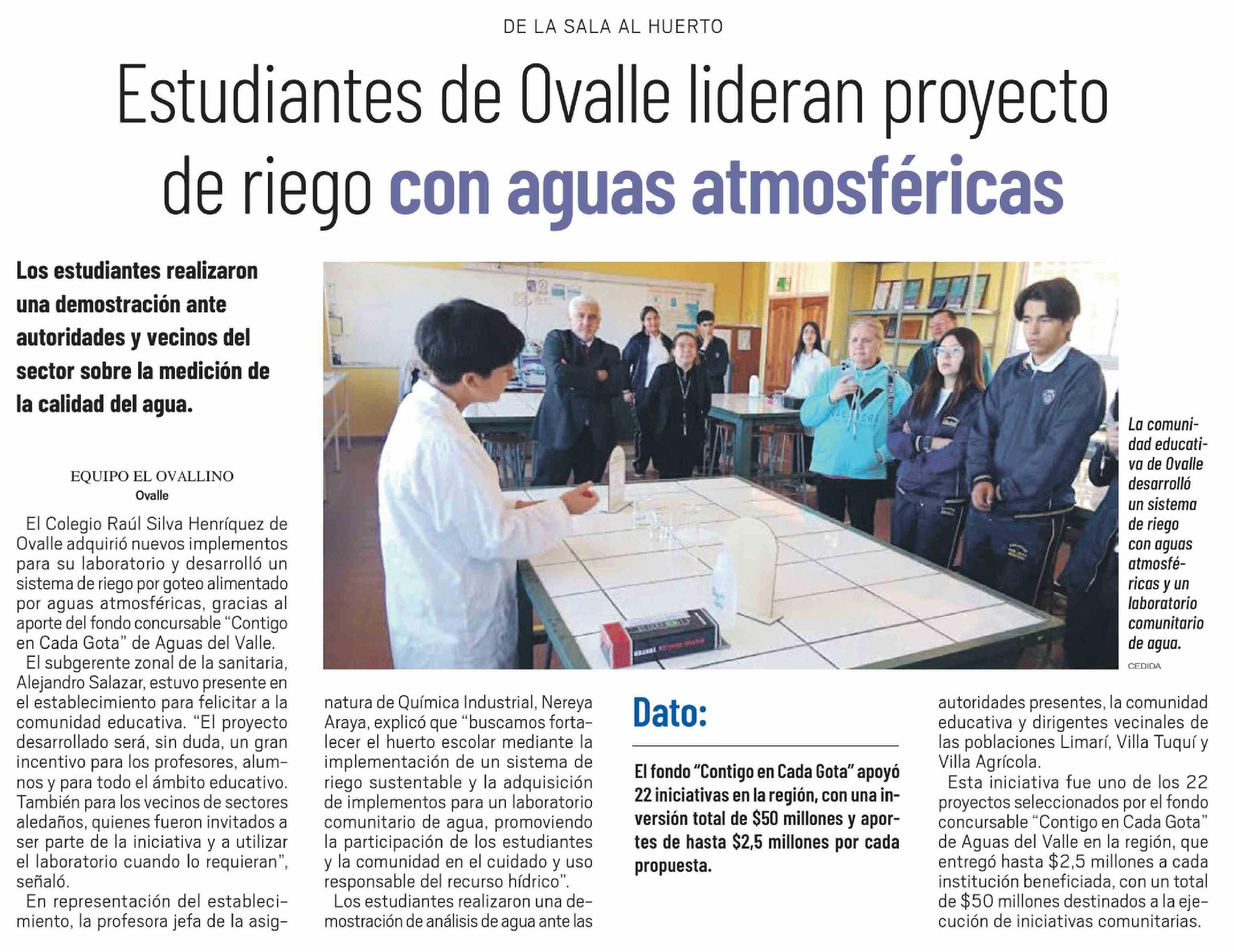 Estudiantes de Ovalle lideran proyecto de riego con aguas atmosféricas 23-04-2026 El Ovallino |