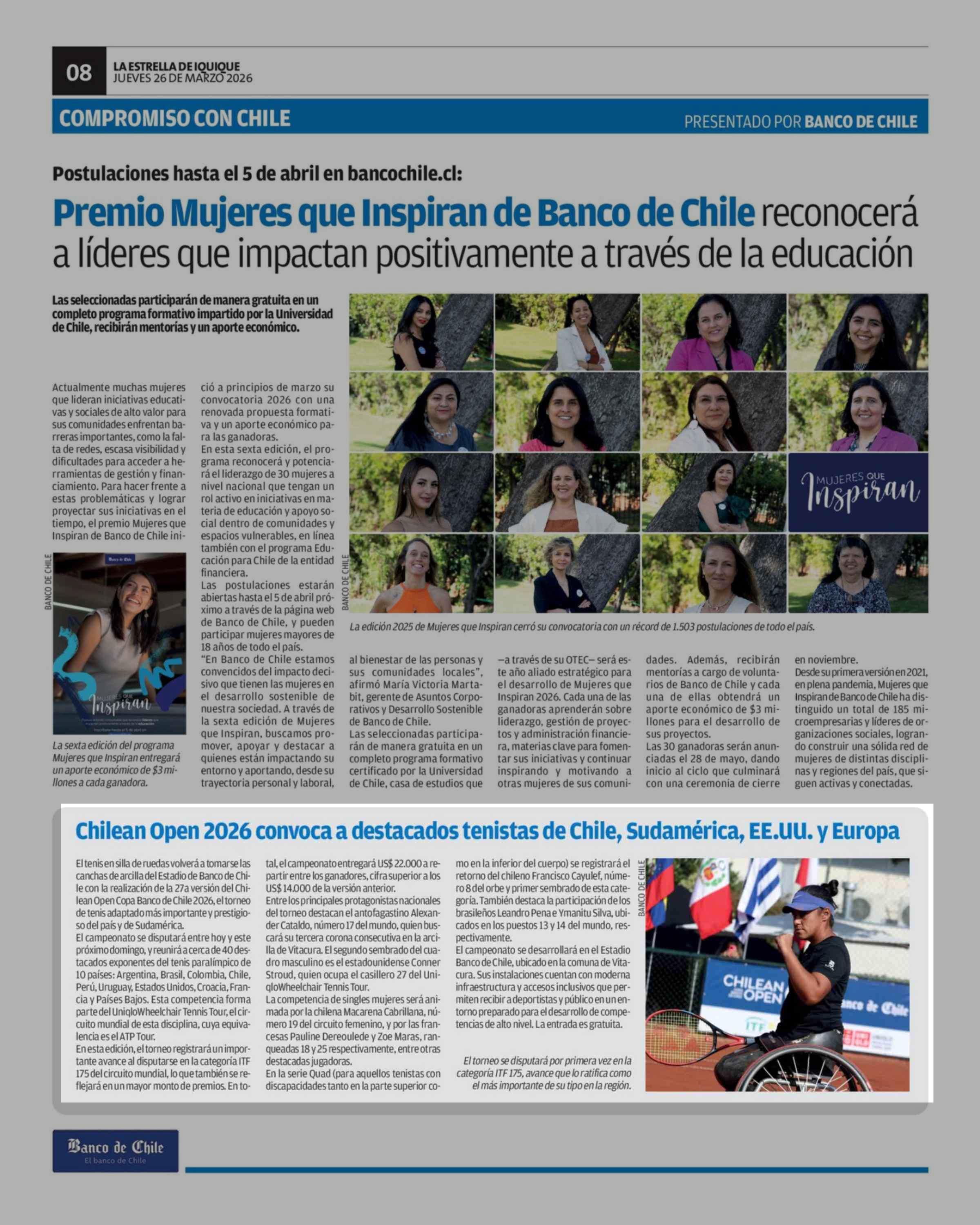 Chilean Open 2026 convoca a destacados tenistas de Chile, Sudamérica, EE.uu. y Europa 26-03-2026 La Estrella de Iquique |