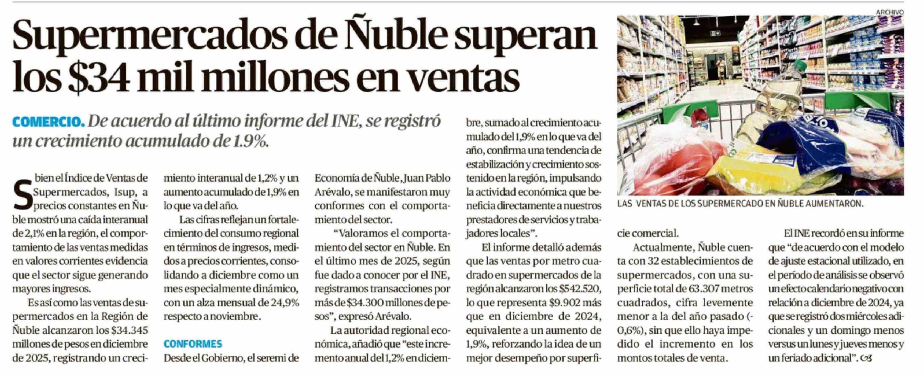 Título: Supermercados de Ñuble superan los $34 mil millones en ventas