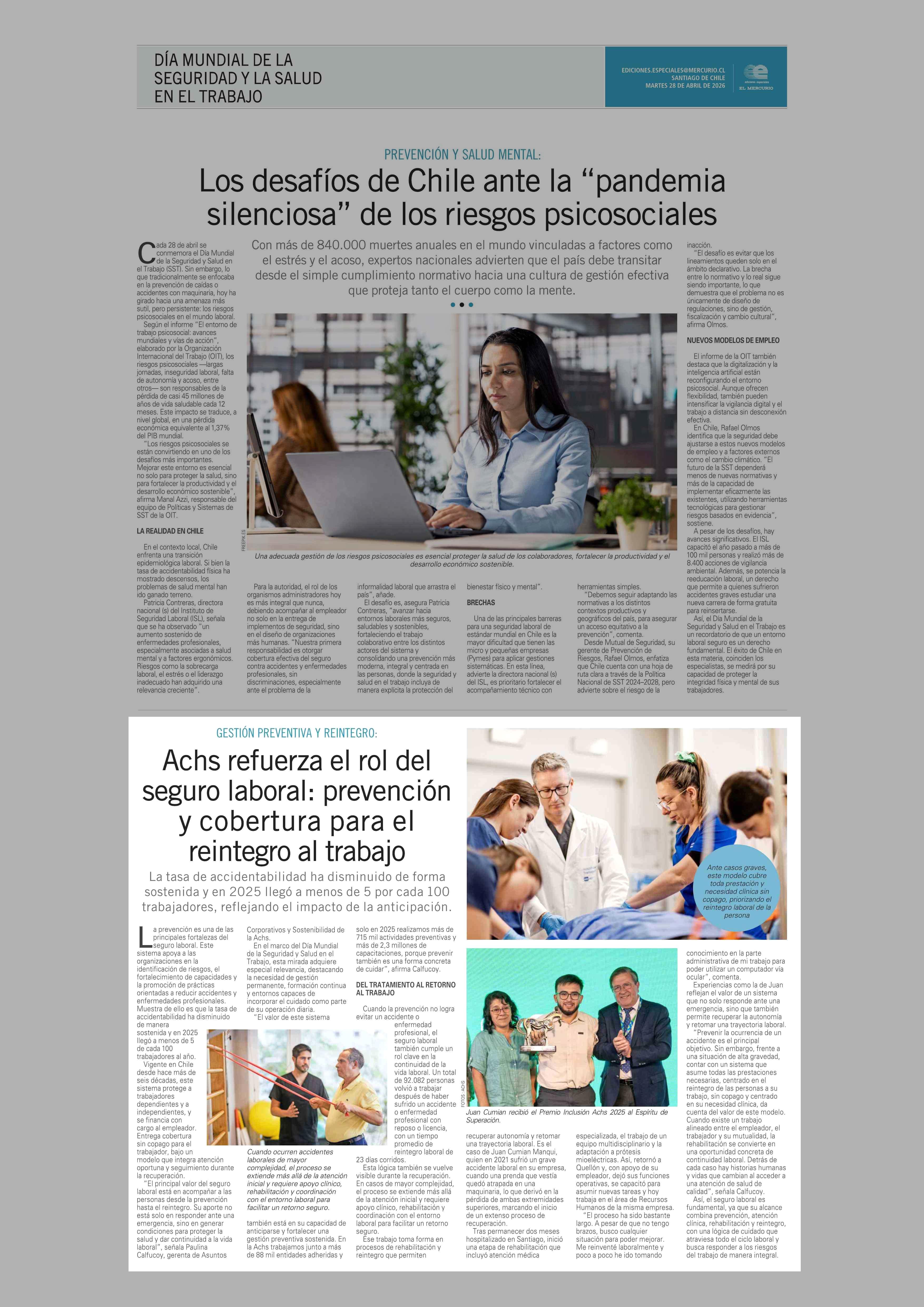 Título: Achs refuerza el rol del seguro laboral: prevención y cobertura para el reintegro al trabajo