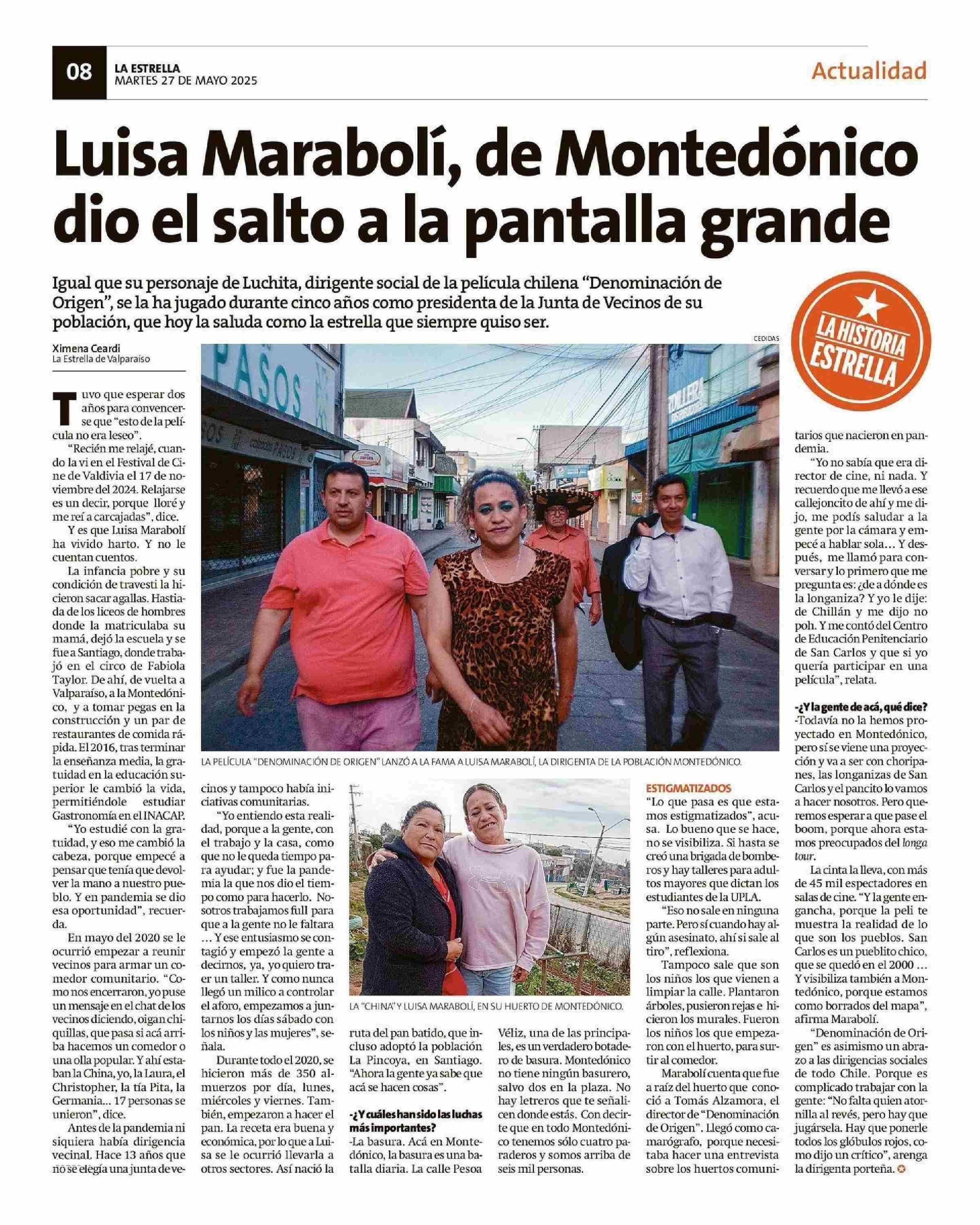Título: Luisa Marabolí, de Montedónico dio el salto a la pantalla grande