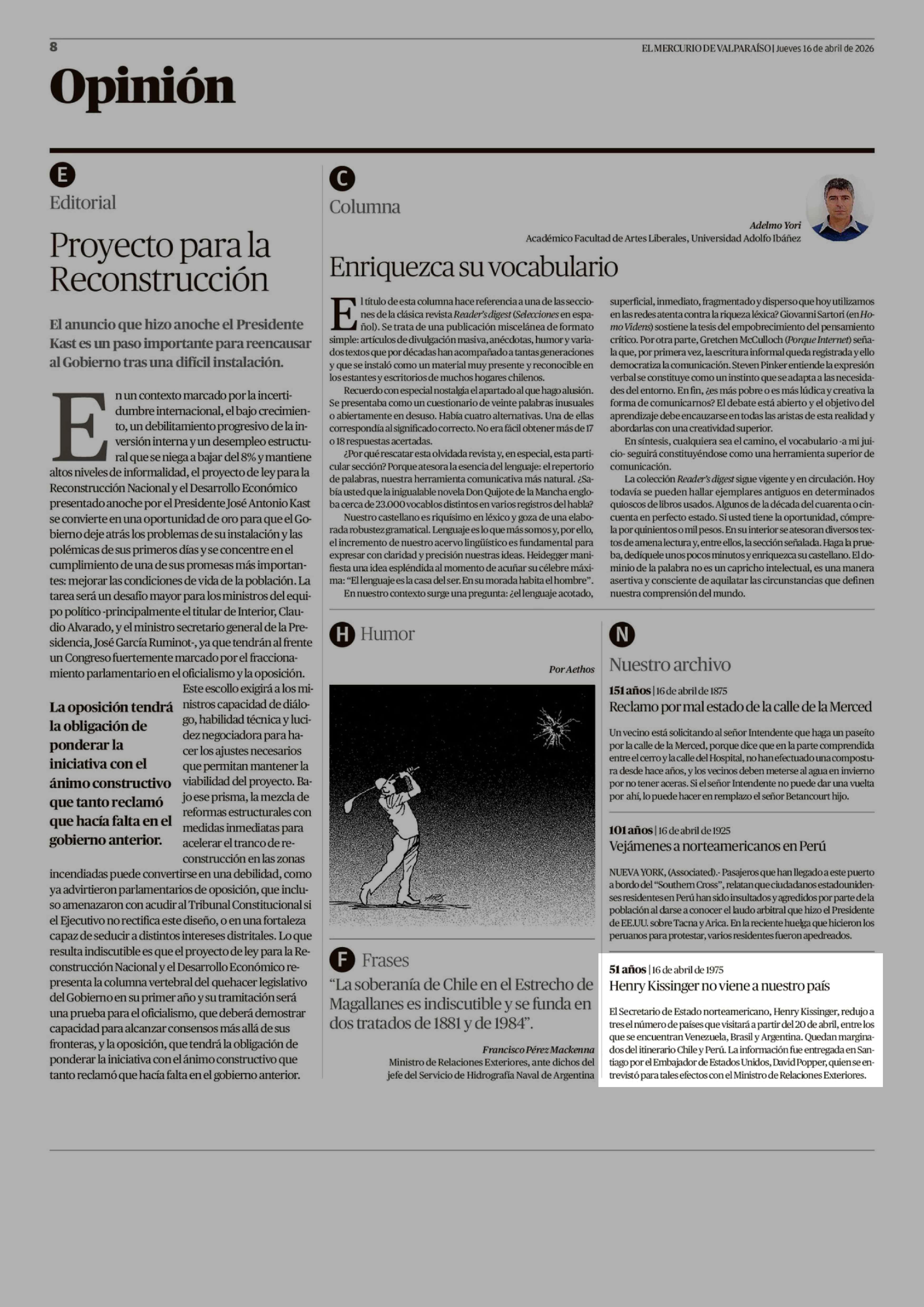 Título: 51 Años | 16 de abril de 1975 Henry Kissinger no viene a nuestro país
