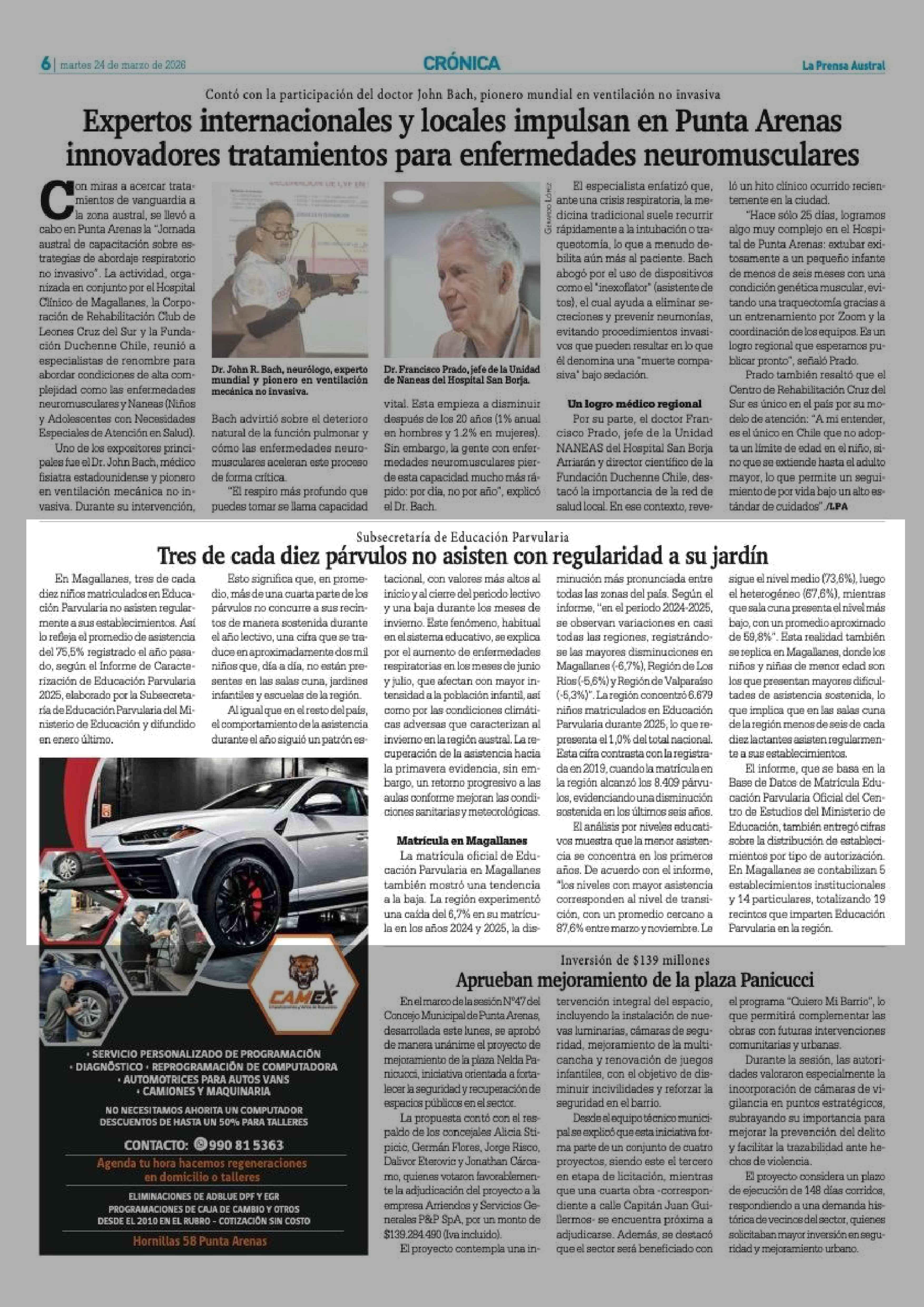 Subsecretaría de Educación Parvularia Tres de cada diez párvulos no asisten con regularidad a su jardín 24-03-2026 La Prensa Austral |