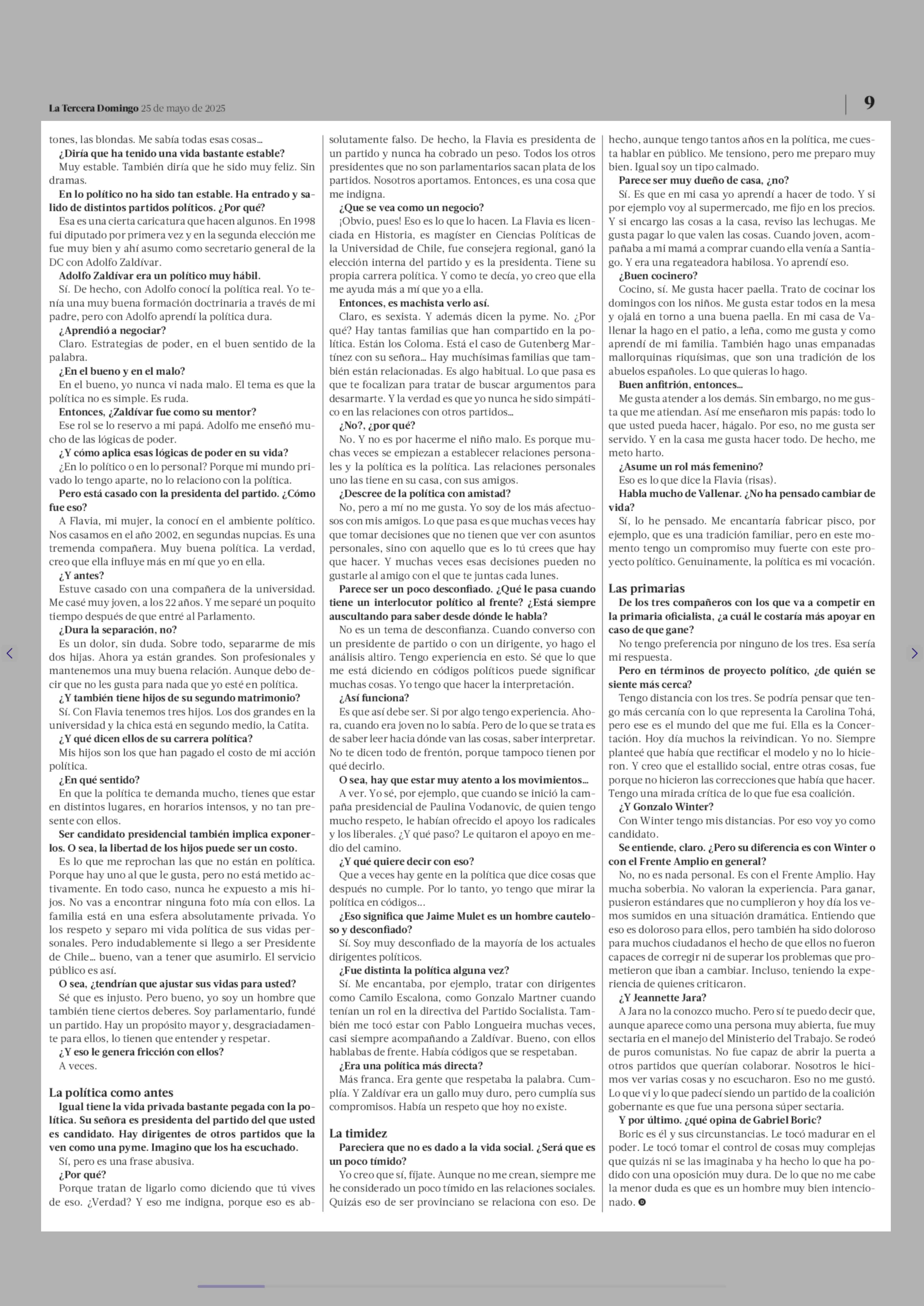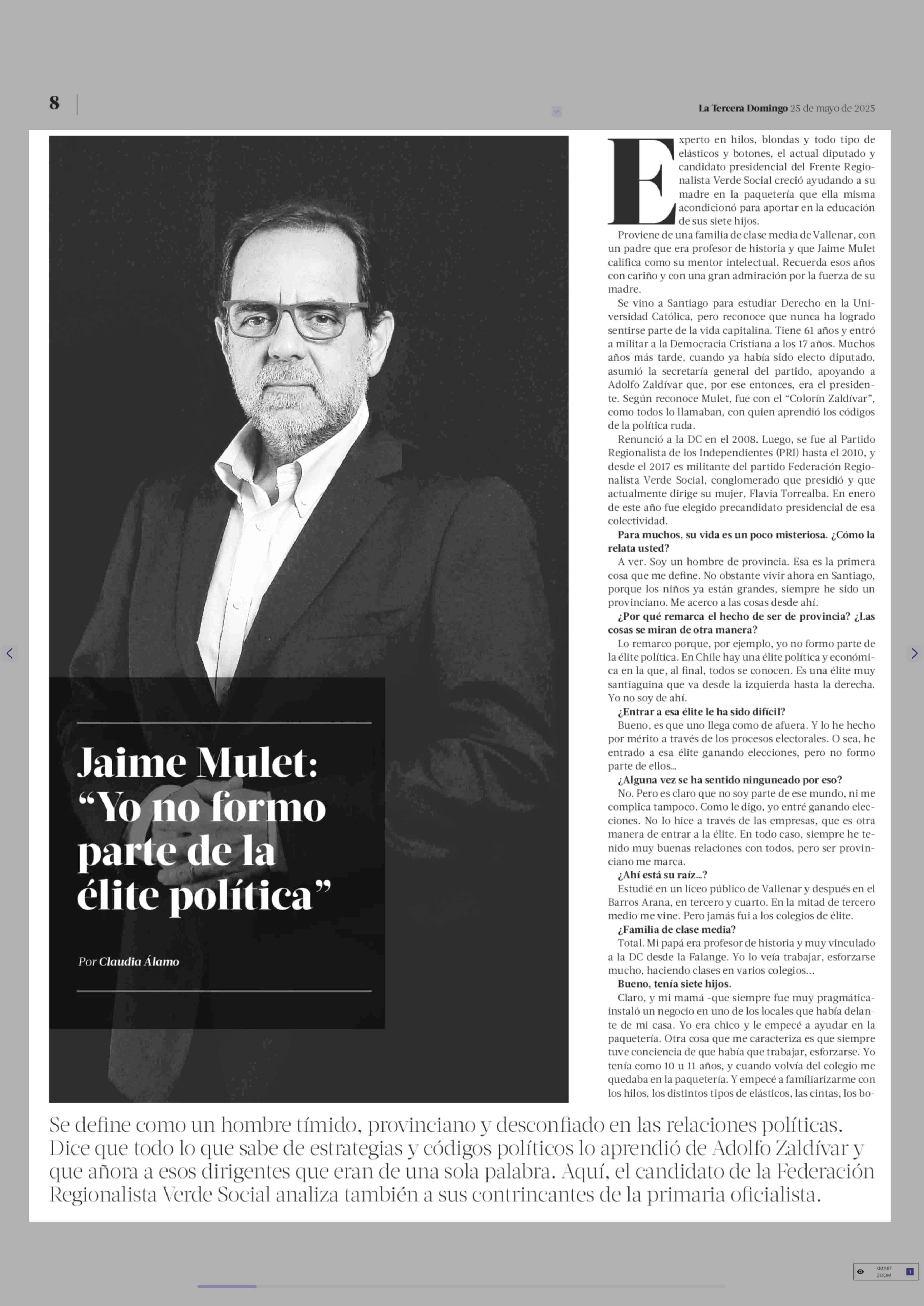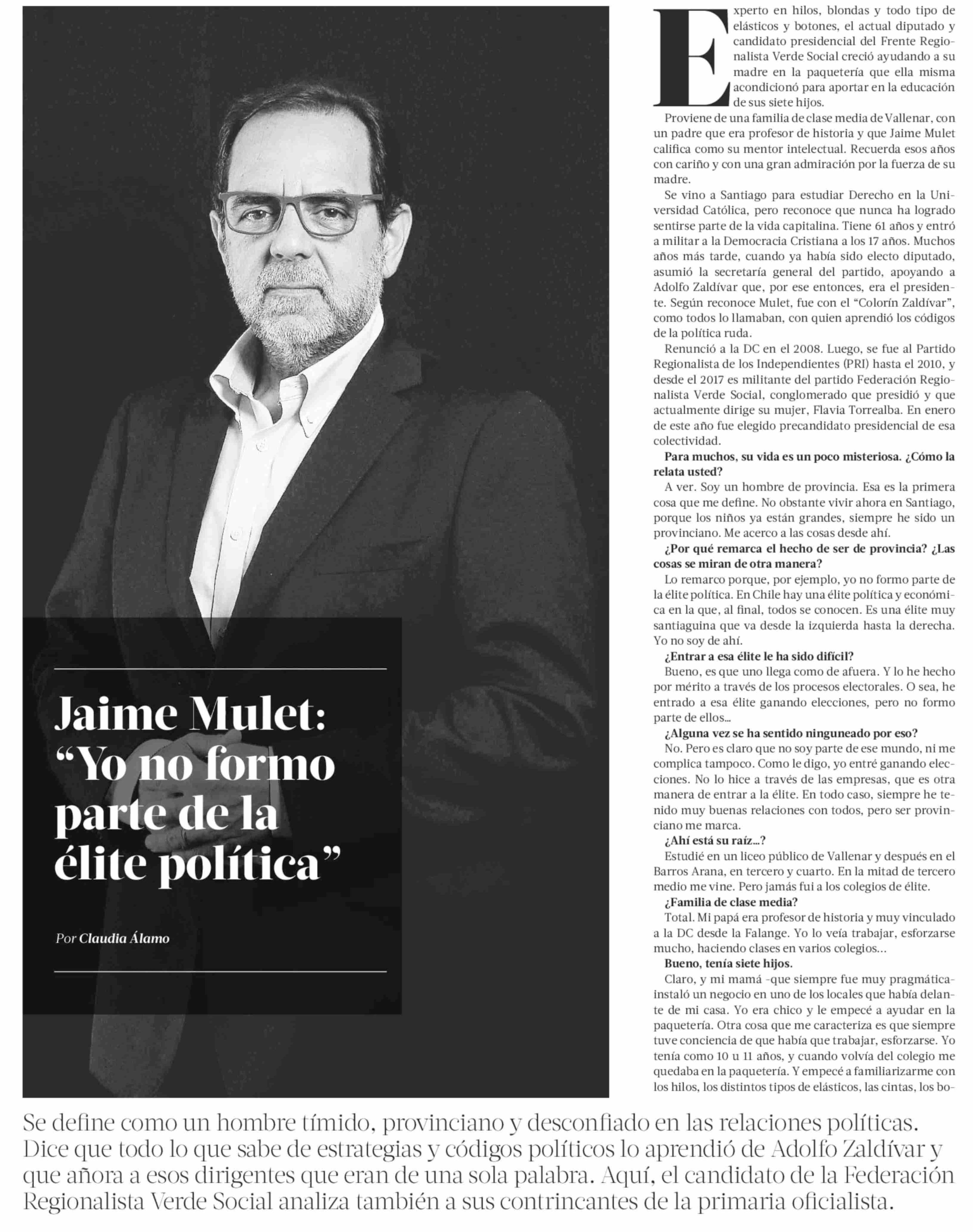 Jaime Mulet: "yo no formo parte de la élite política" 25-05-2025 La Tercera |