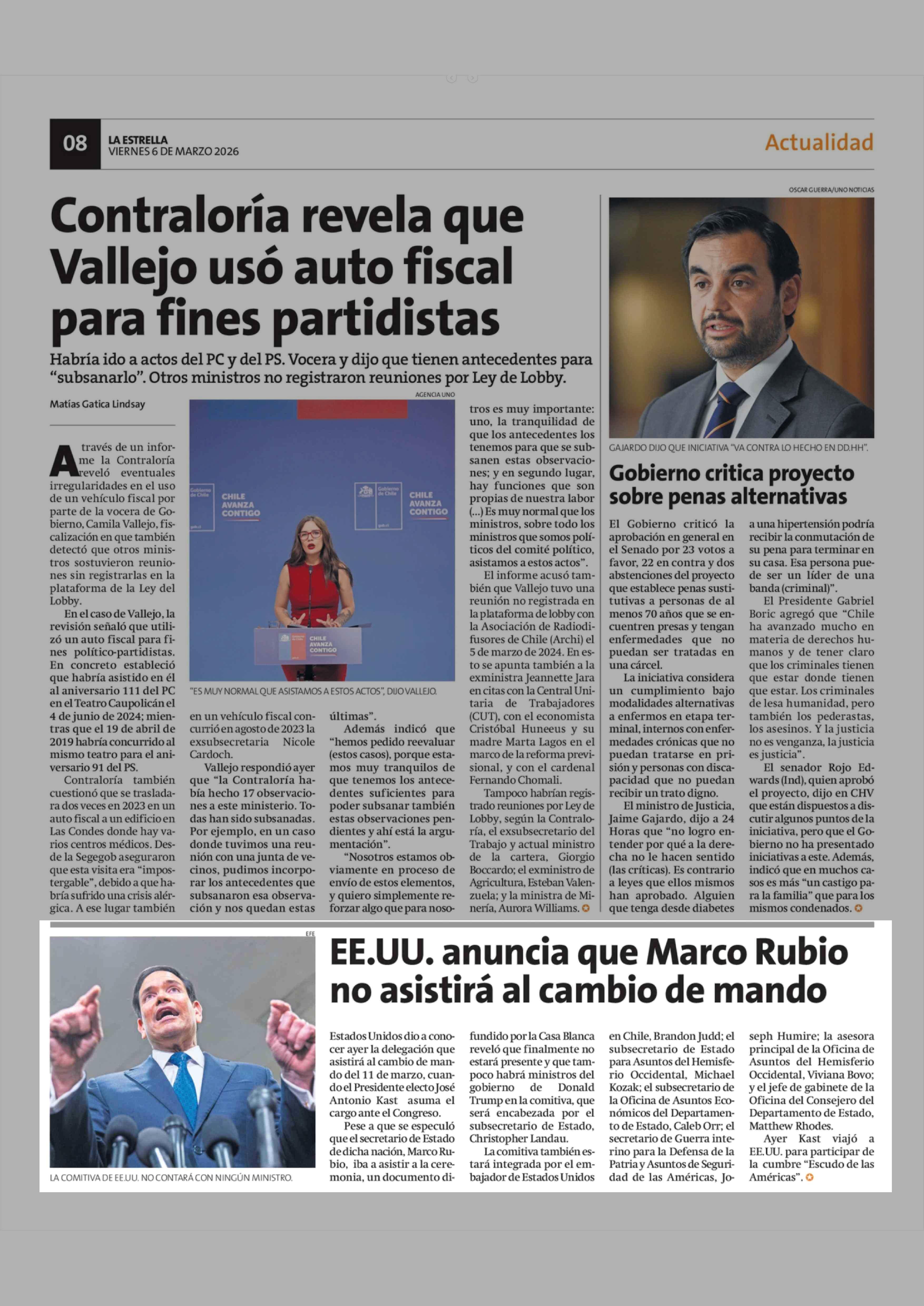 EE.UU. anuncia que Marco Rubio no asistirá al cambio de mando 06-03-2026 La Estrella de Concepción |