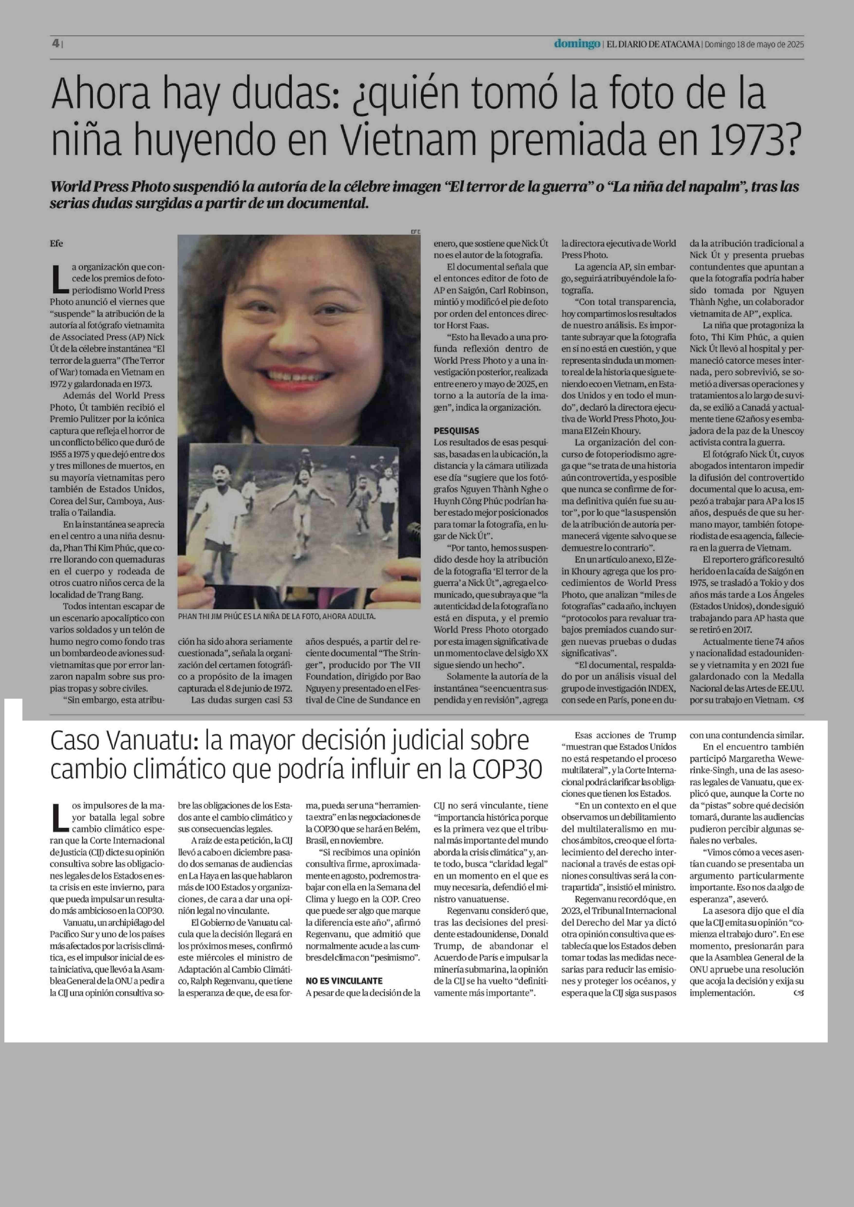 Caso Vanuatu: la mayor decisión judicial sobre cambio climático que podría influir en la COP30 18-05-2025 El Diario de Atacama |