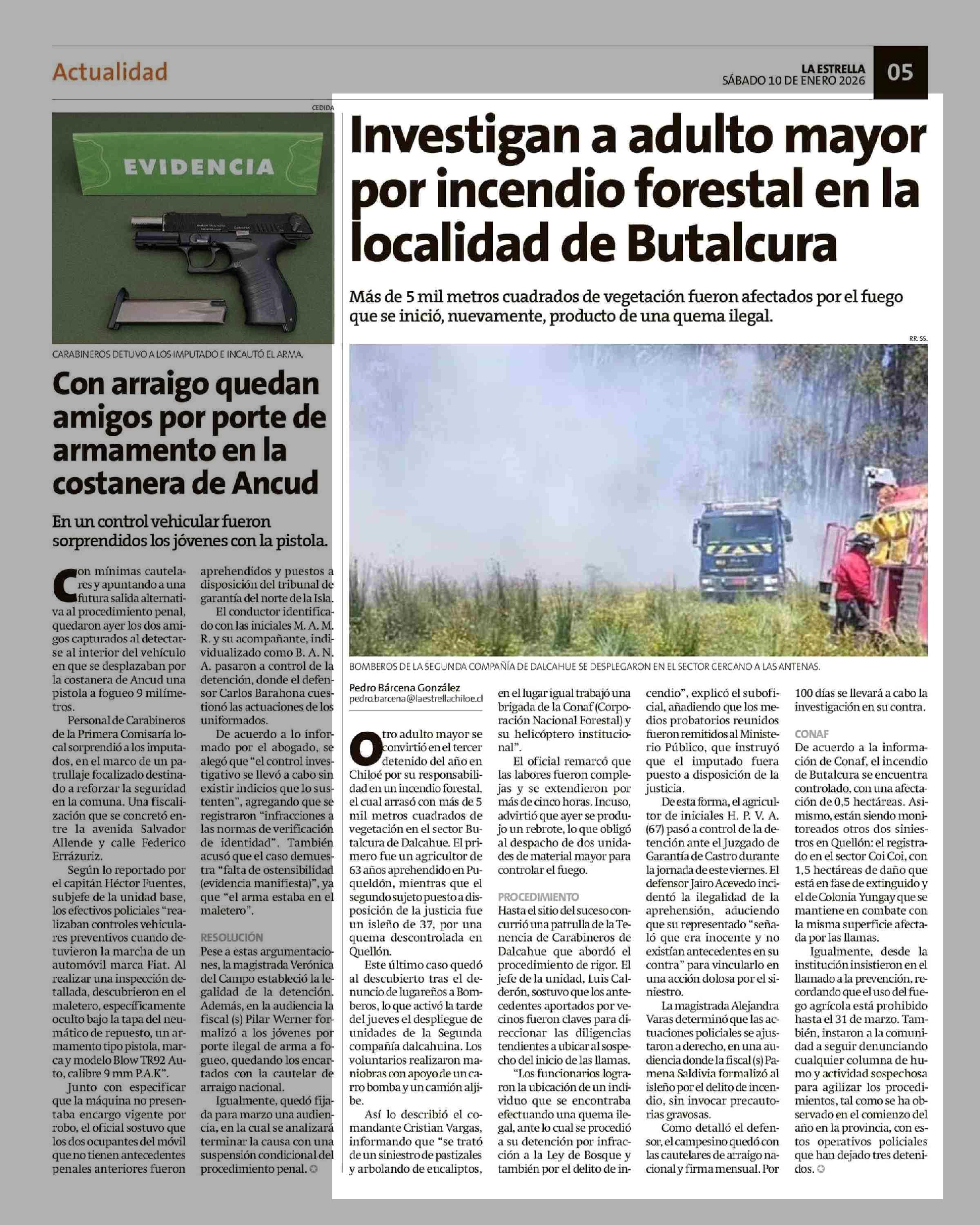 Título: Investigan a adulto mayor por incendio forestal en la localidad de Butalcura