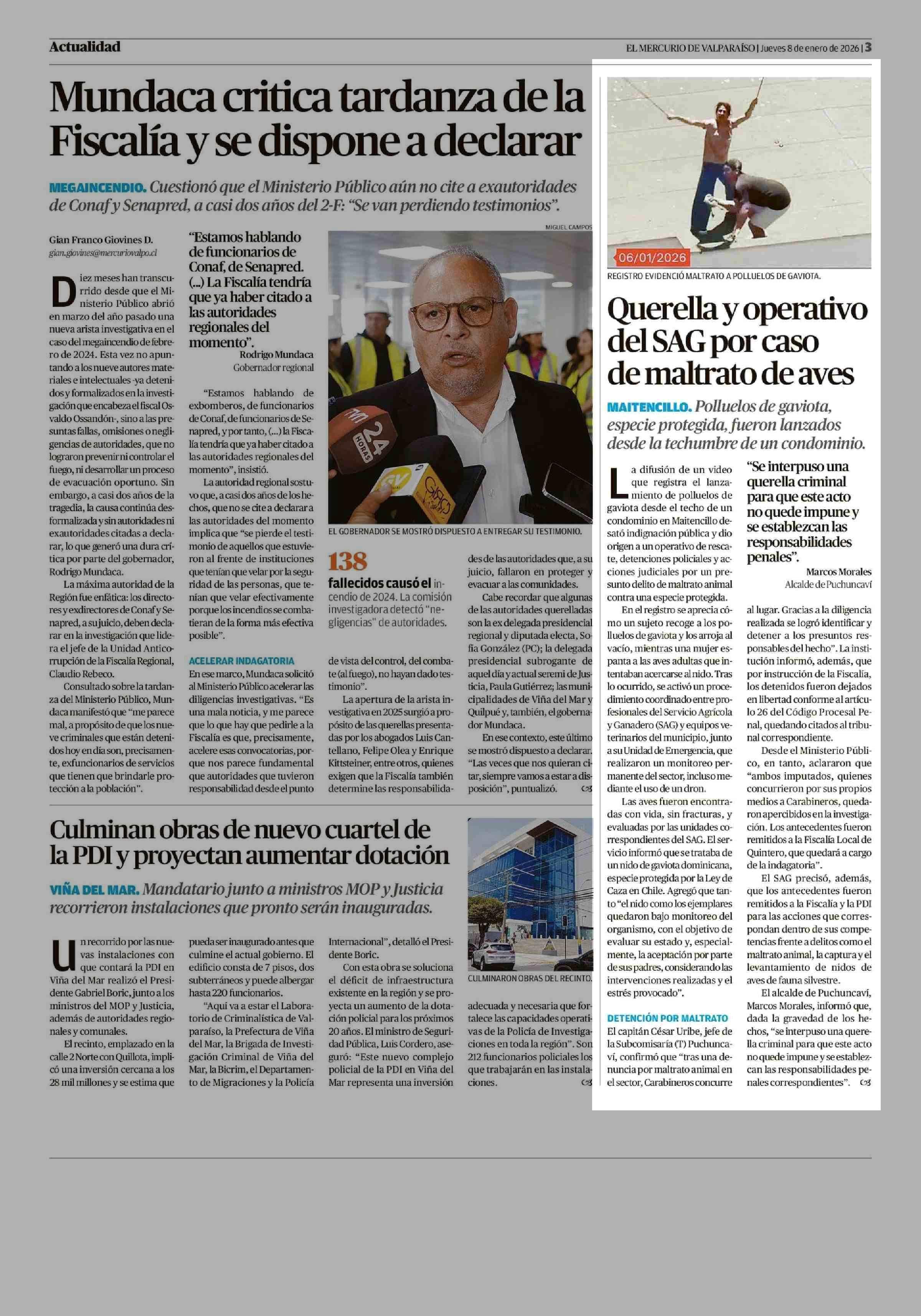 Querella y operativo del SAG por caso de maltrato de aves 08-01-2026 El Mercurio de Valparaíso |