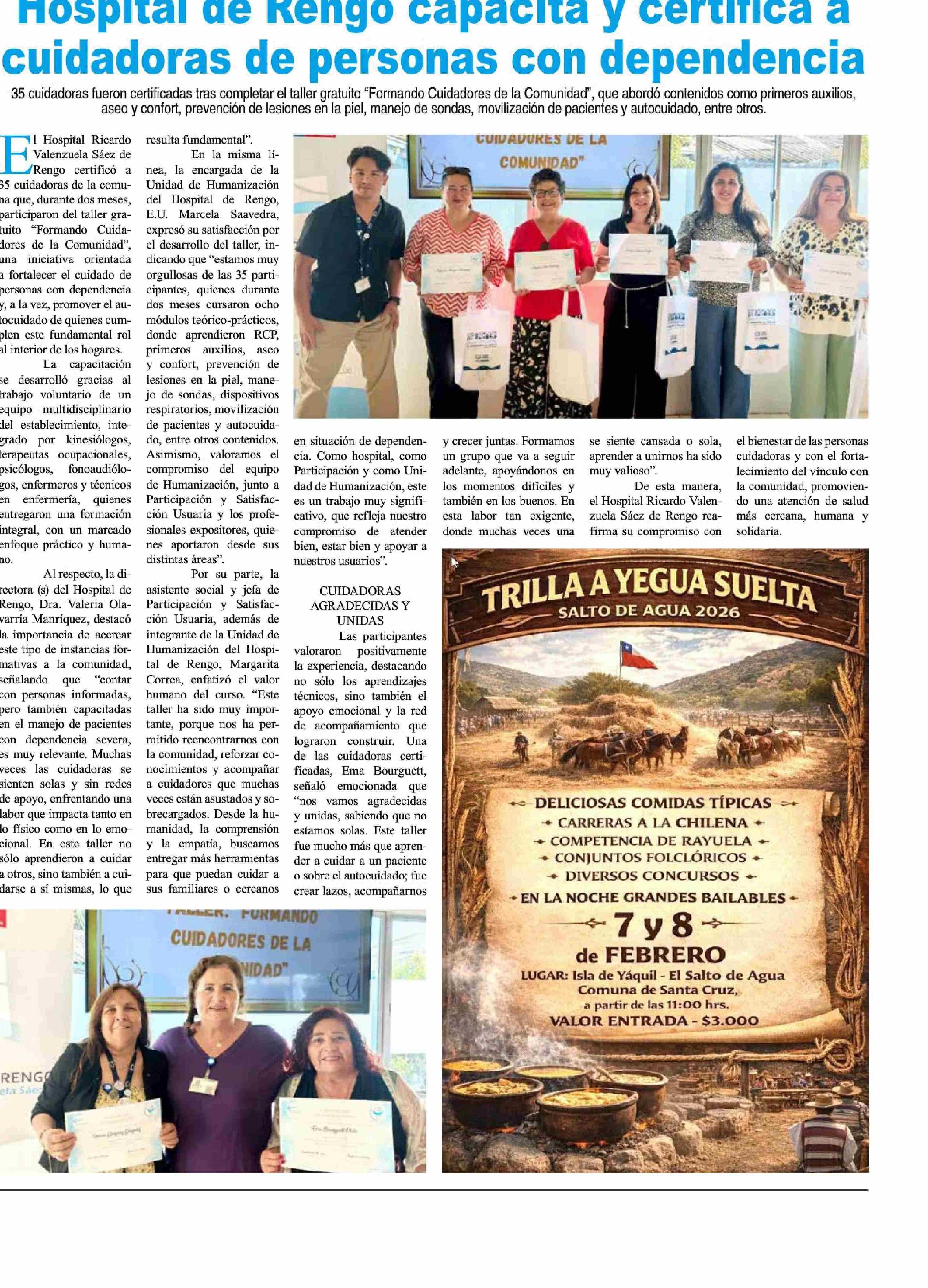 Título: Hospital de Rengo capacita y certifica a cuidadoras de personas con dependencia
