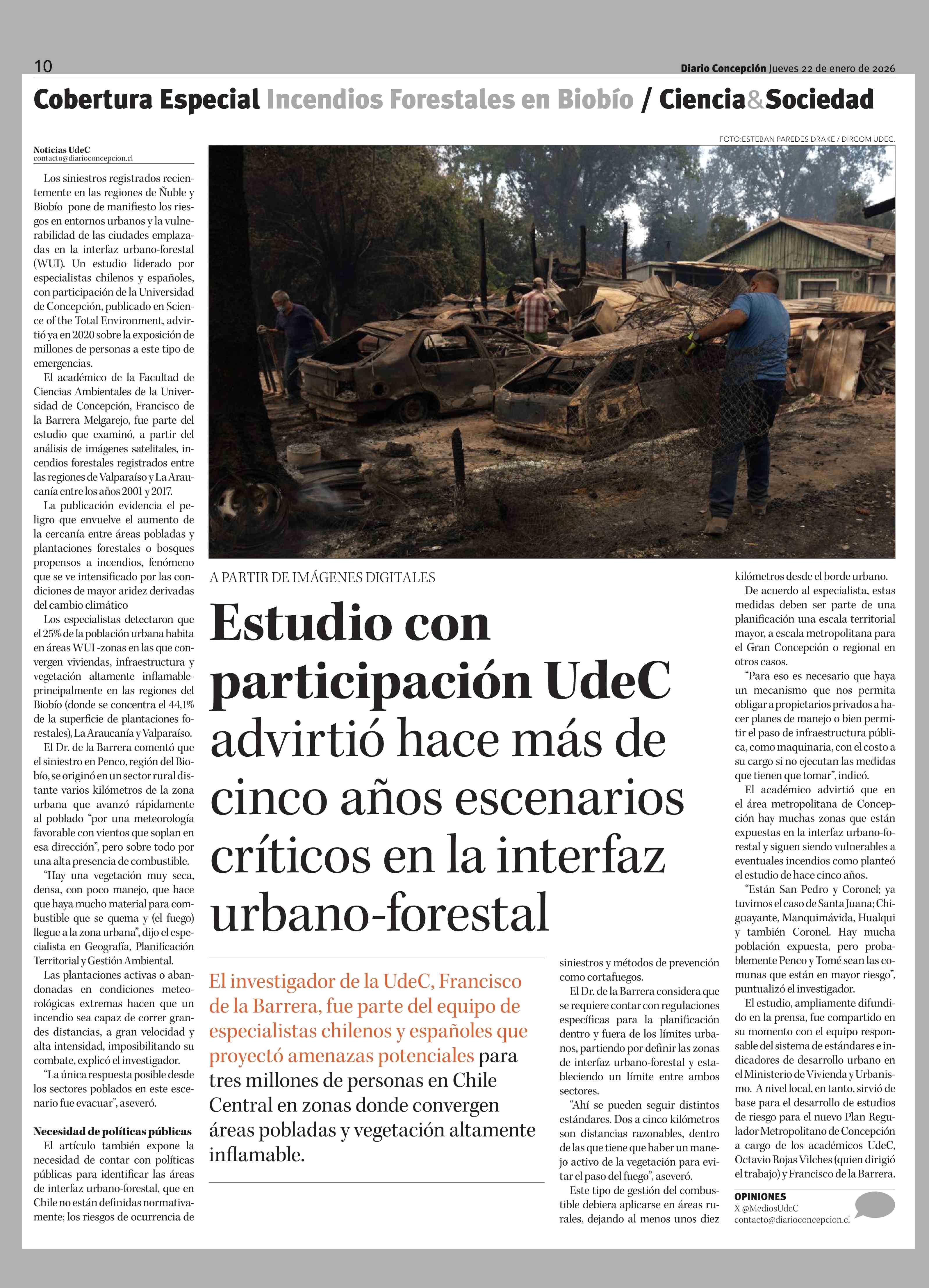 Estudio con participación UdeC advirtió hace más de cinco años escenarios críticos en la interfaz urbano-forestal 22-01-2026 Diario Concepción |