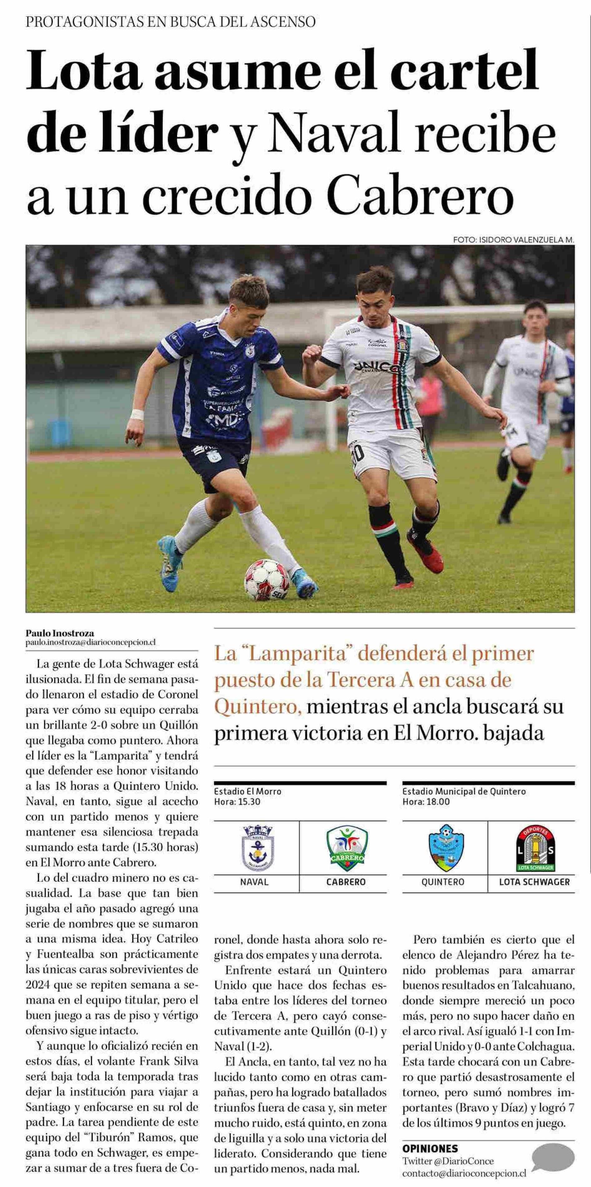 Título: Lota asume el cartel de líder y Naval recibe a un crecido Cabrero