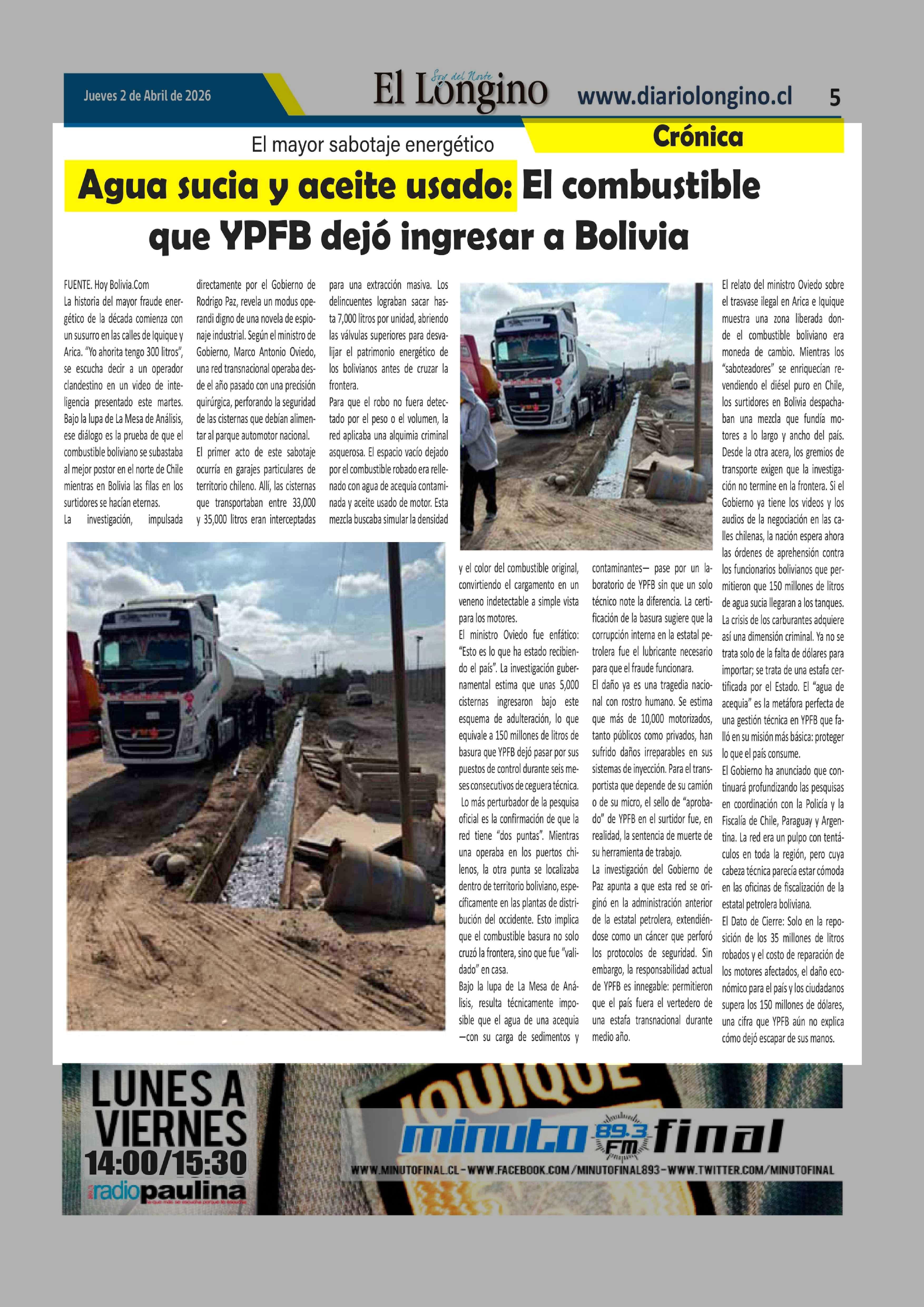 Título: Agua sucia y aceite usado: El combustible que YPFB dejó ingresar a Bolivia