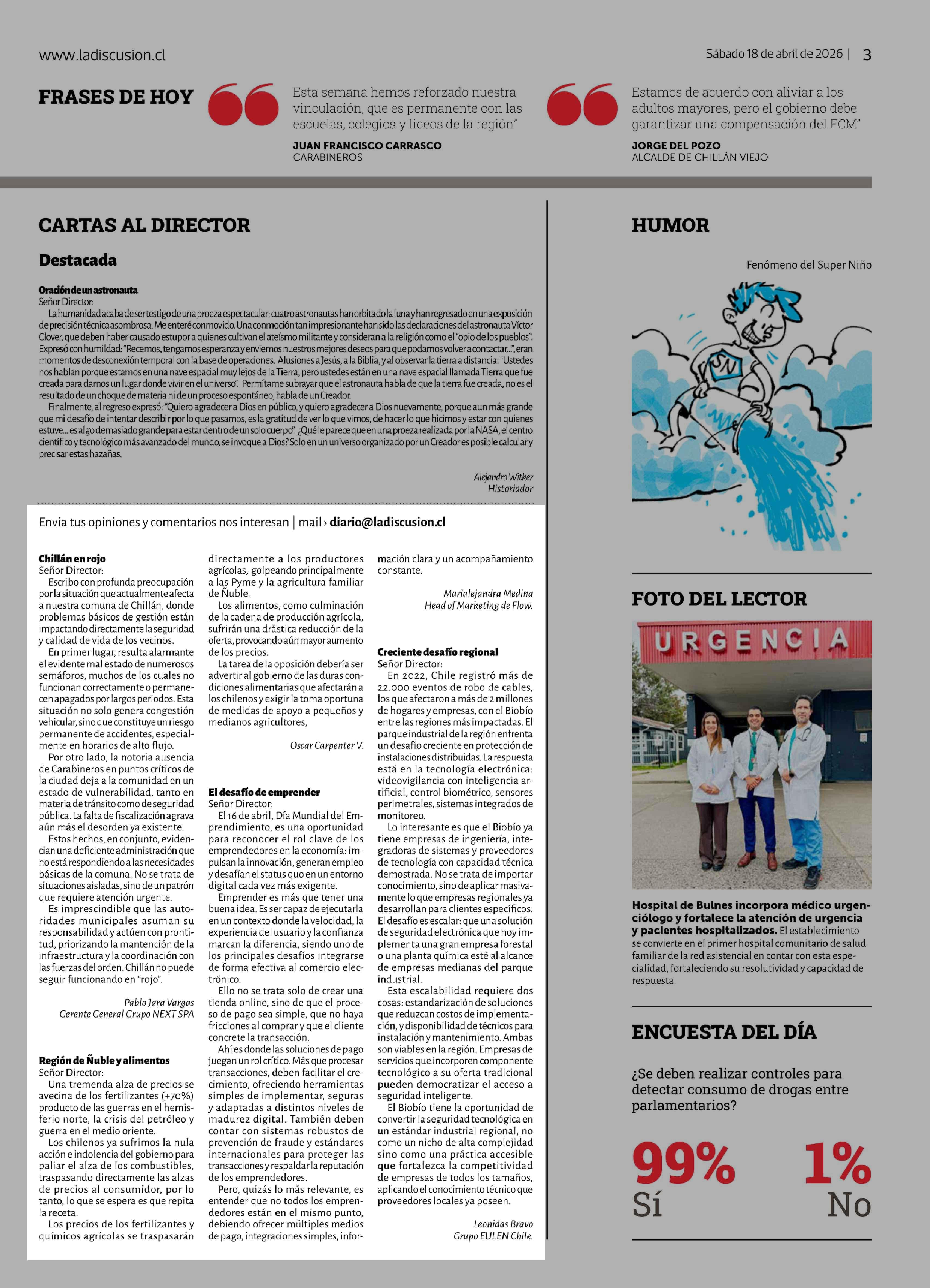 Fecha: 18-04-2026 Sector: Noticia general Región: Región del Ñuble