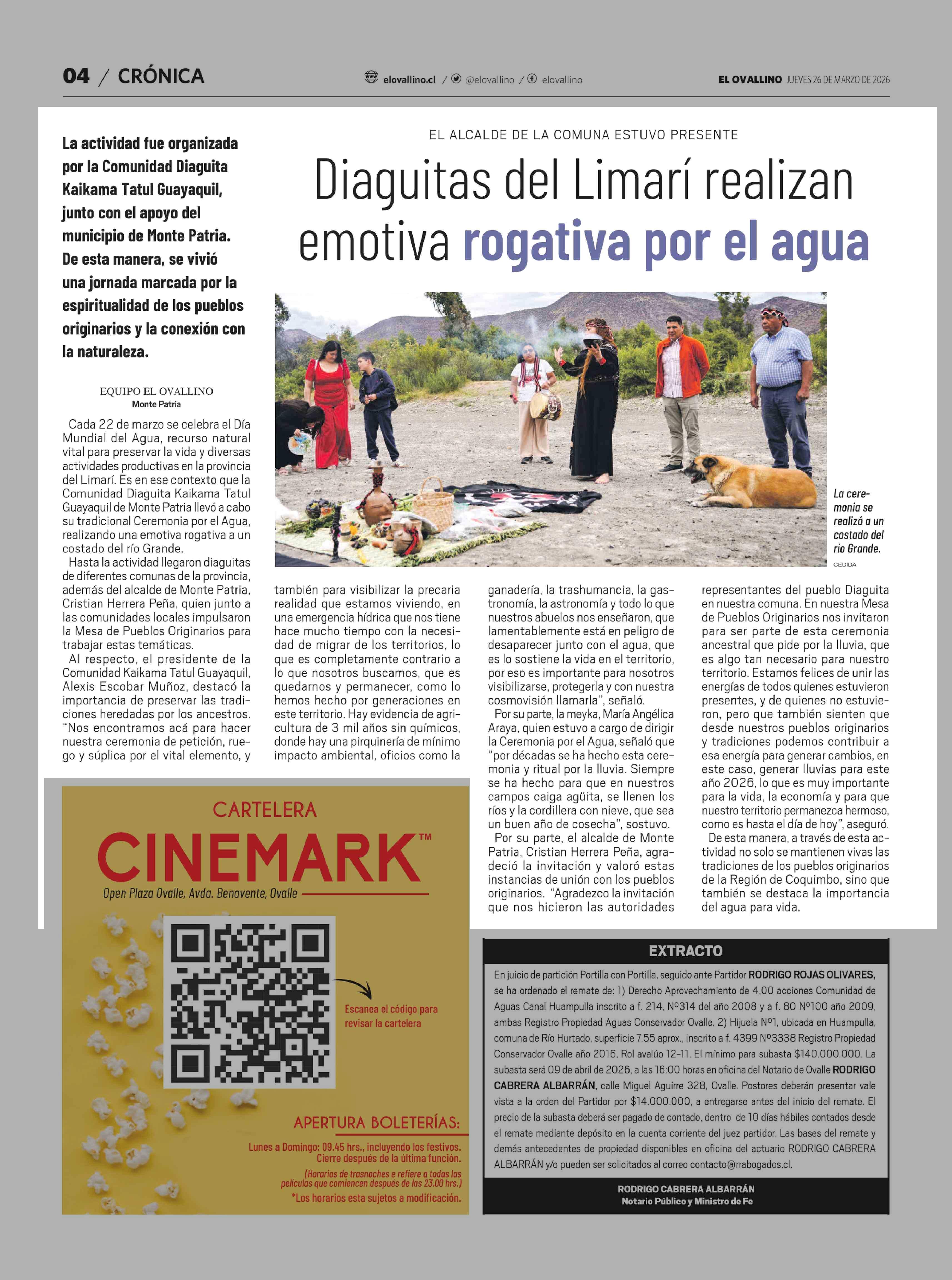 Diaguitas del Limarí realizan emotiva rogativa por el agua 26-03-2026 El Ovallino |