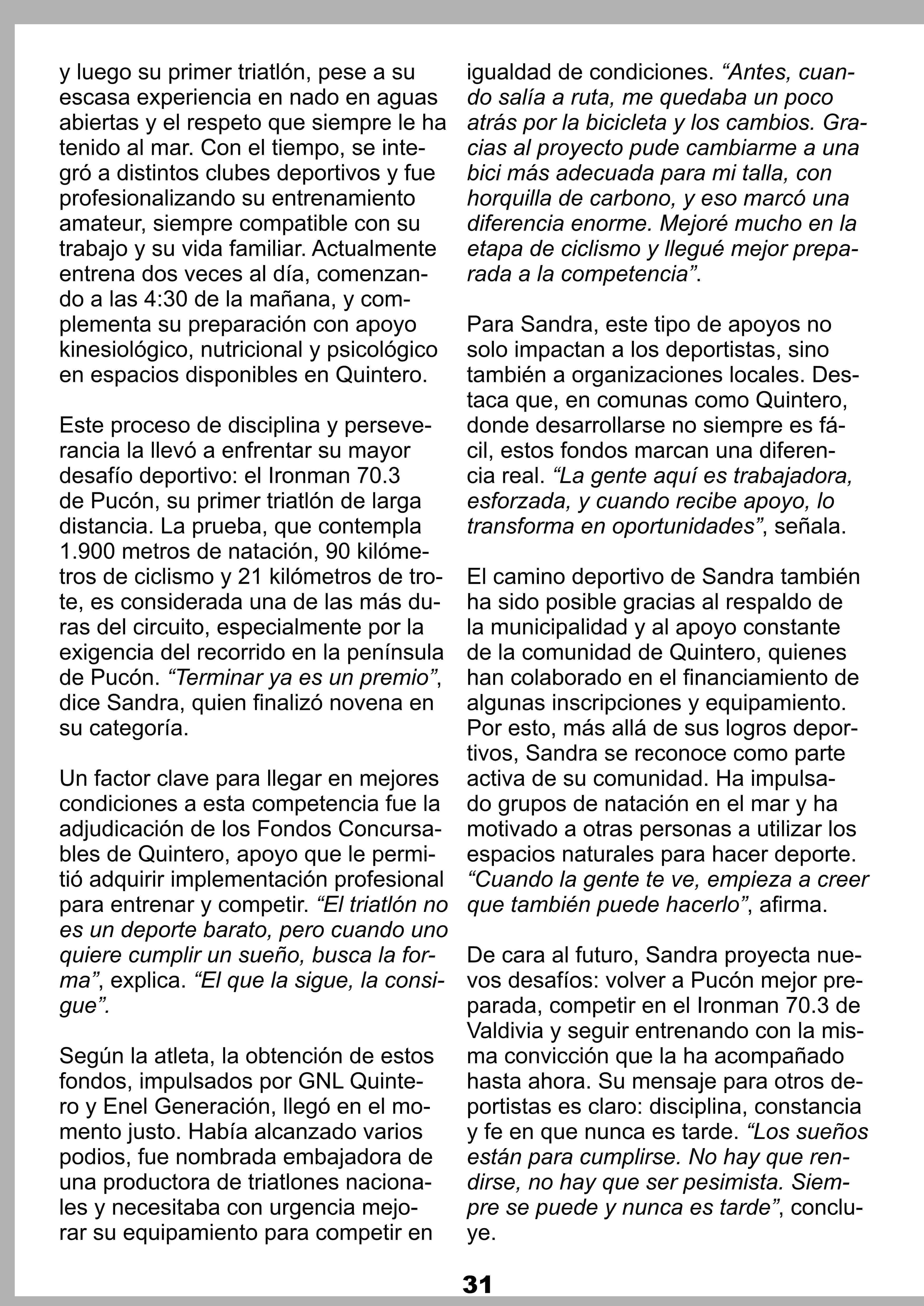 Título: De Quintero a Pucón: Sandra Palma y el camino que la llevó al Ironman 70.3