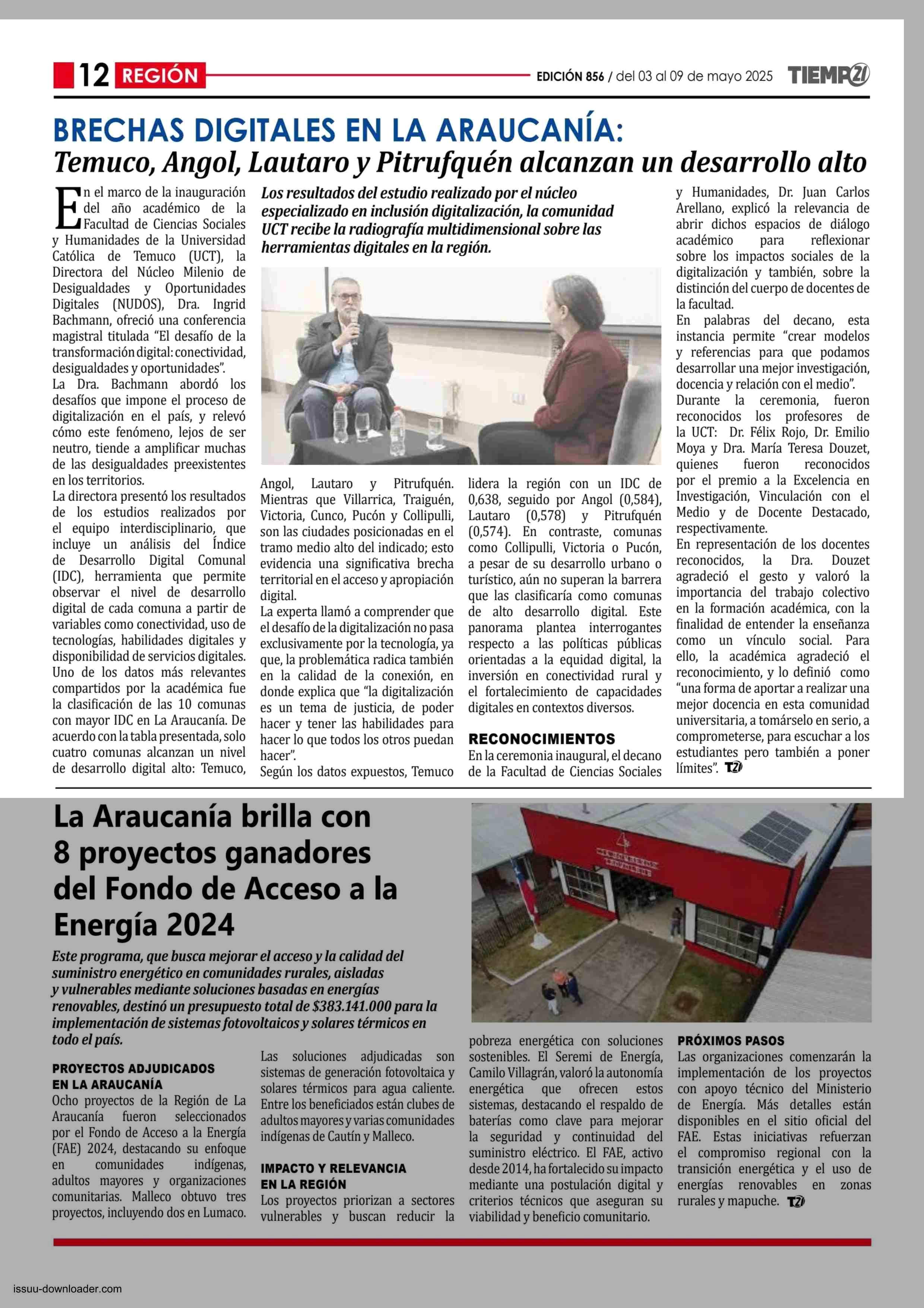 BRECHAS DIGITALES EN LA ARAUCANÍA: 03-05-2025 Tiempo 21 |
