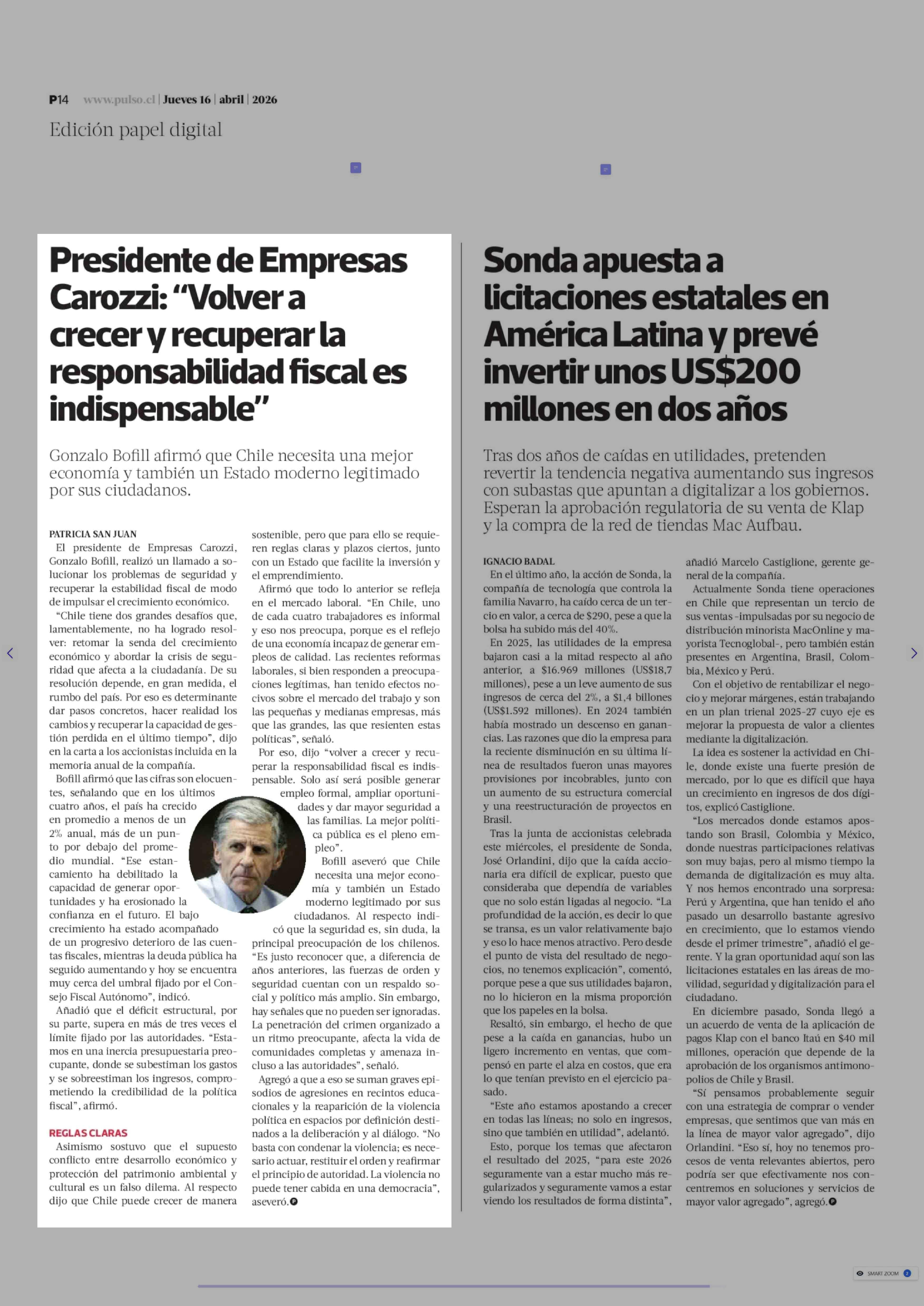 Título: Presidente de Empresas Carozzi: "Volver a crecer y recuperar la responsabilidad fiscal es indispensable"