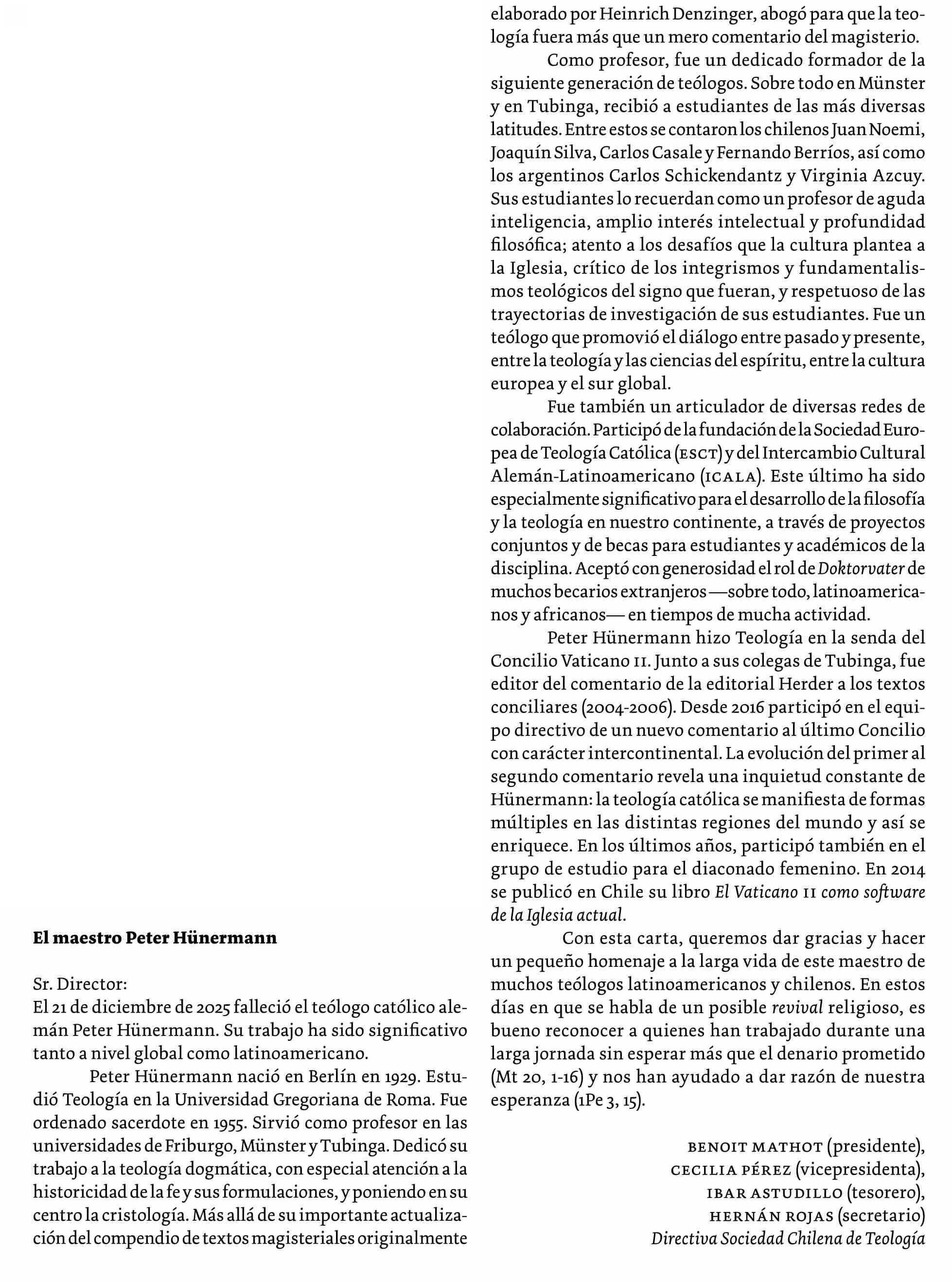 CARTAS: El maestro Peter Hiinermann 12-02-2026 Revista Mensaje |