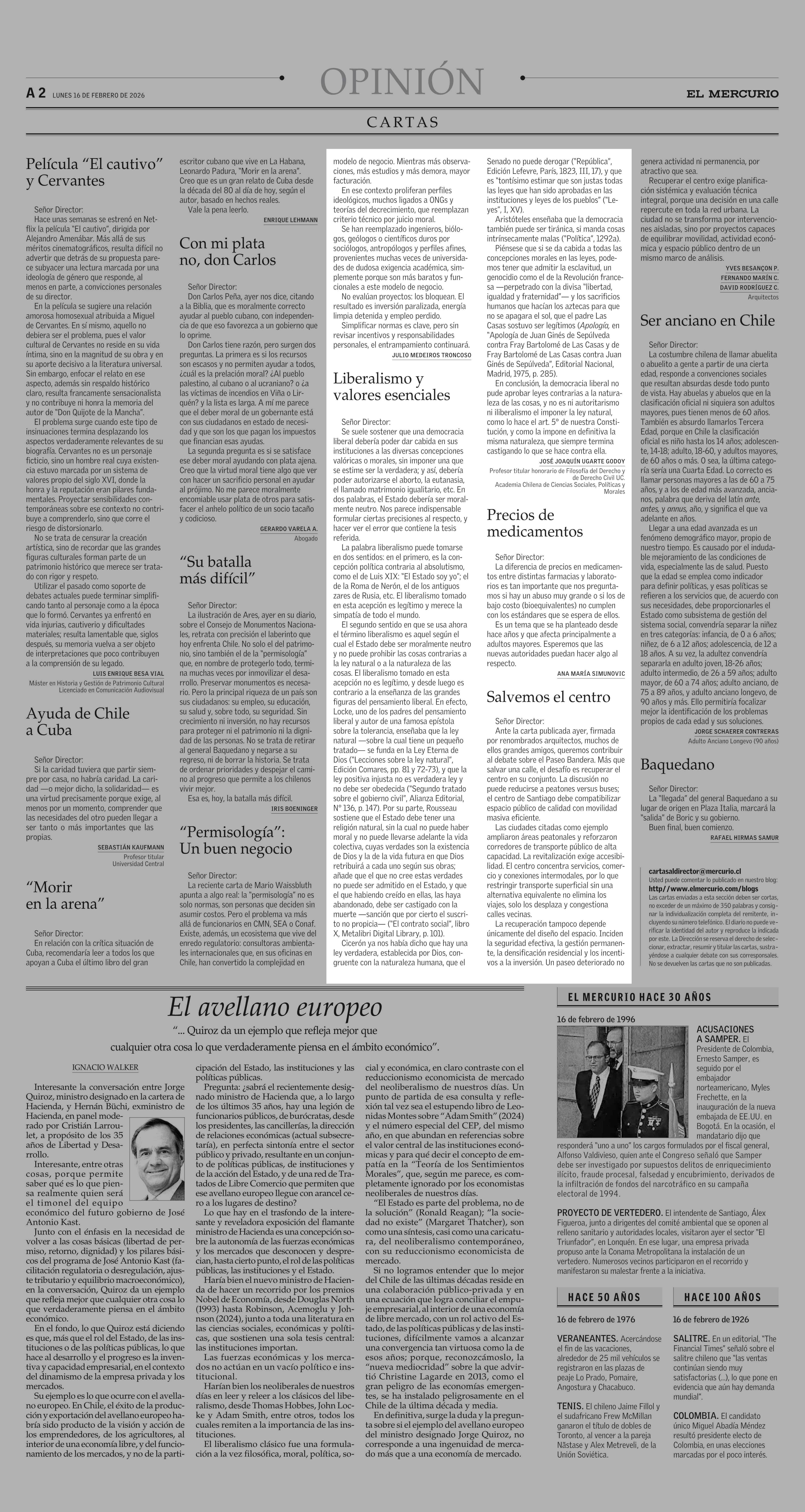 Cartas: Liberalismo y valores esenciales 16-02-2026 El Mercurio |