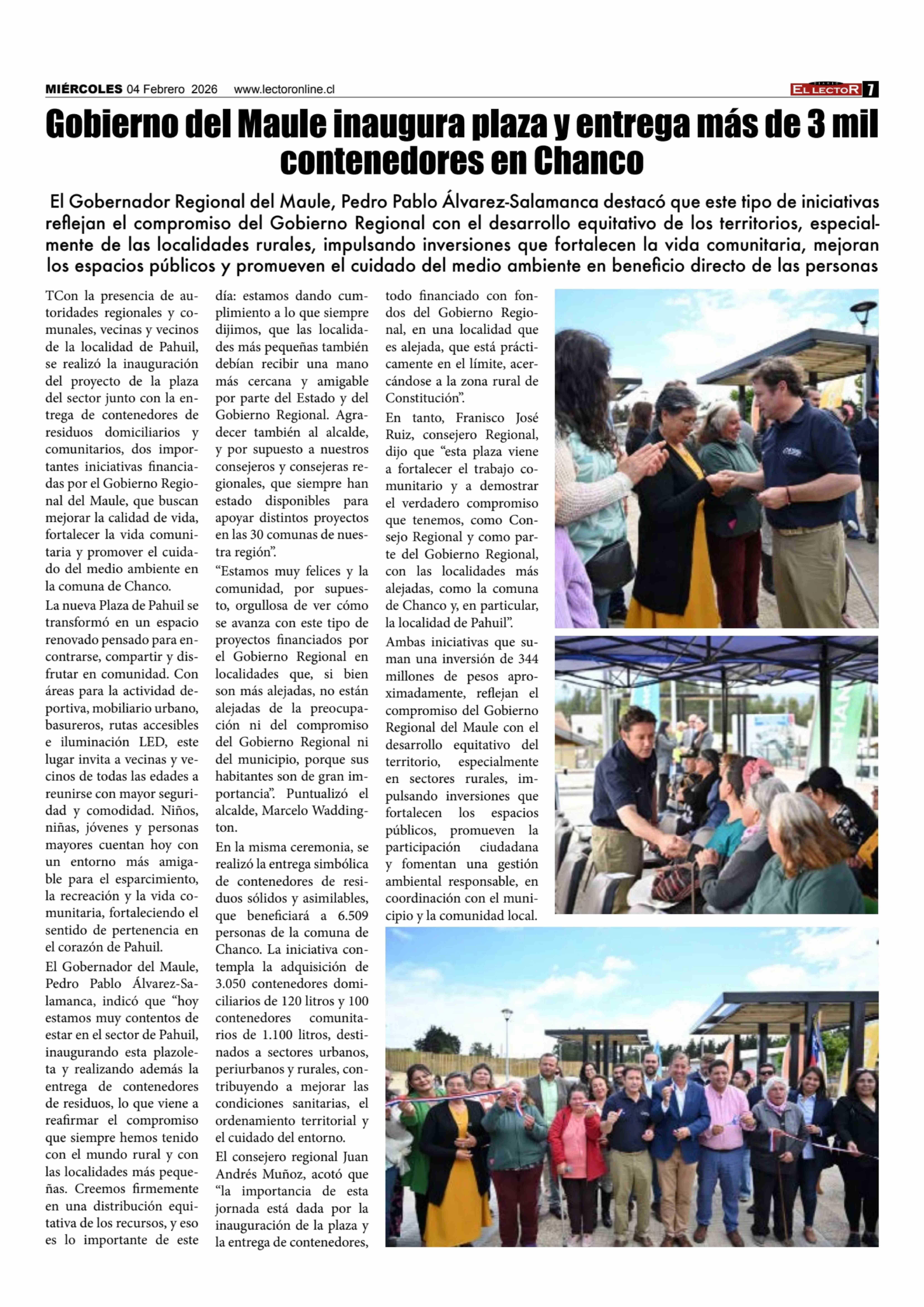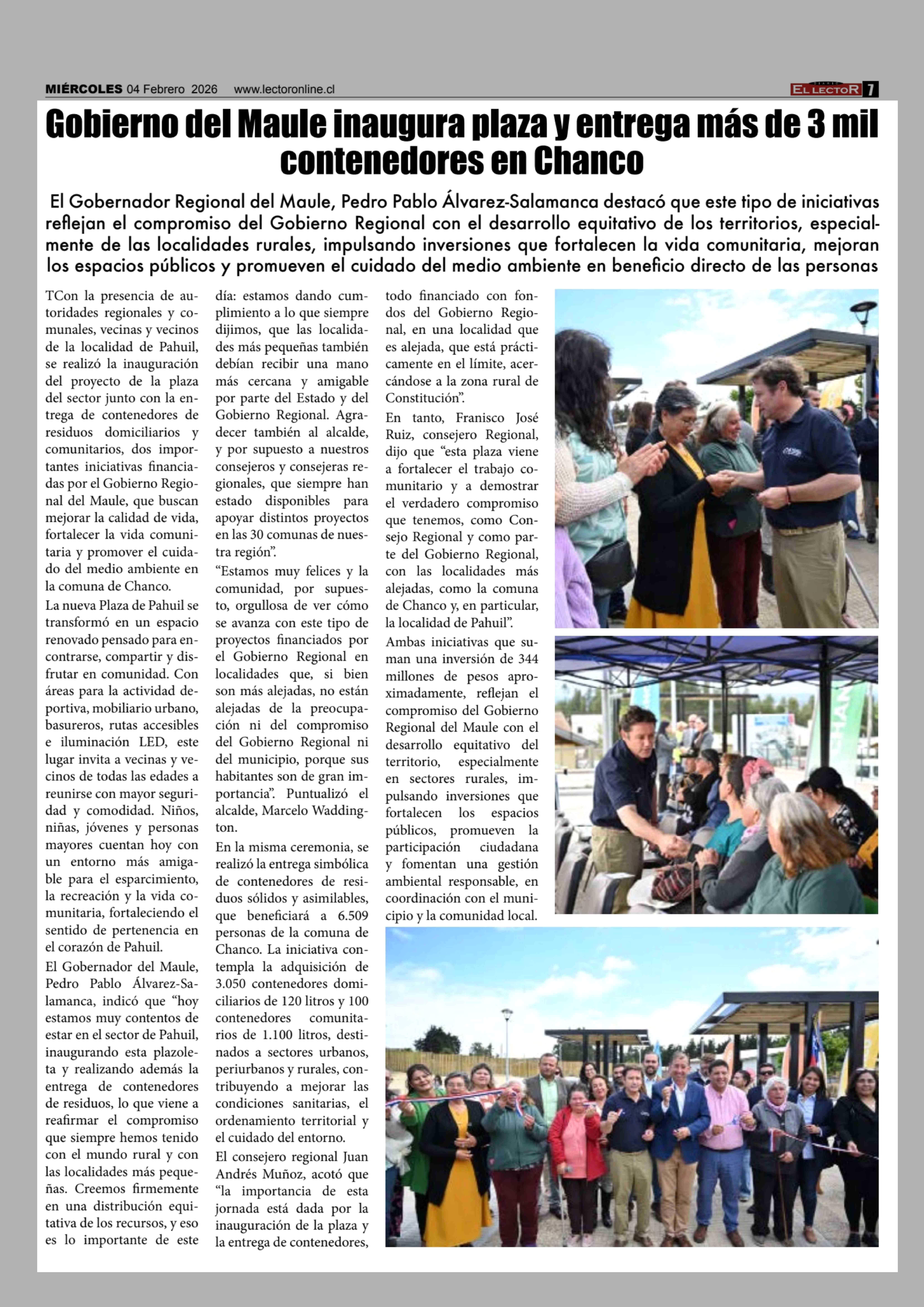 Título: Gobierno del Maule inaugura plaza y entrega más de 3 mil contenedores en Chanco