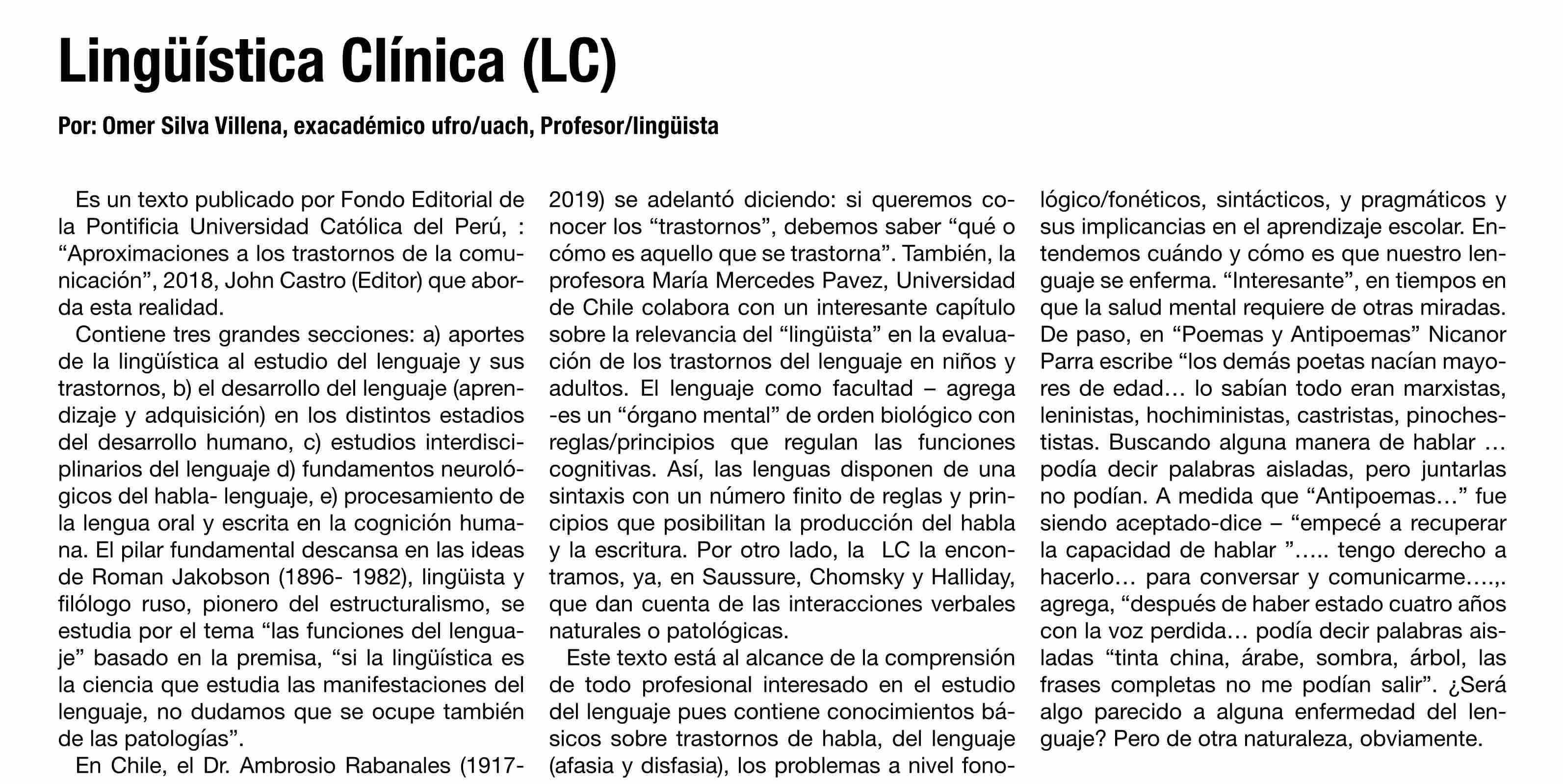 | Título: | COLUMNAS DE OPINIÓN: Lingüística Clínica (LC) |