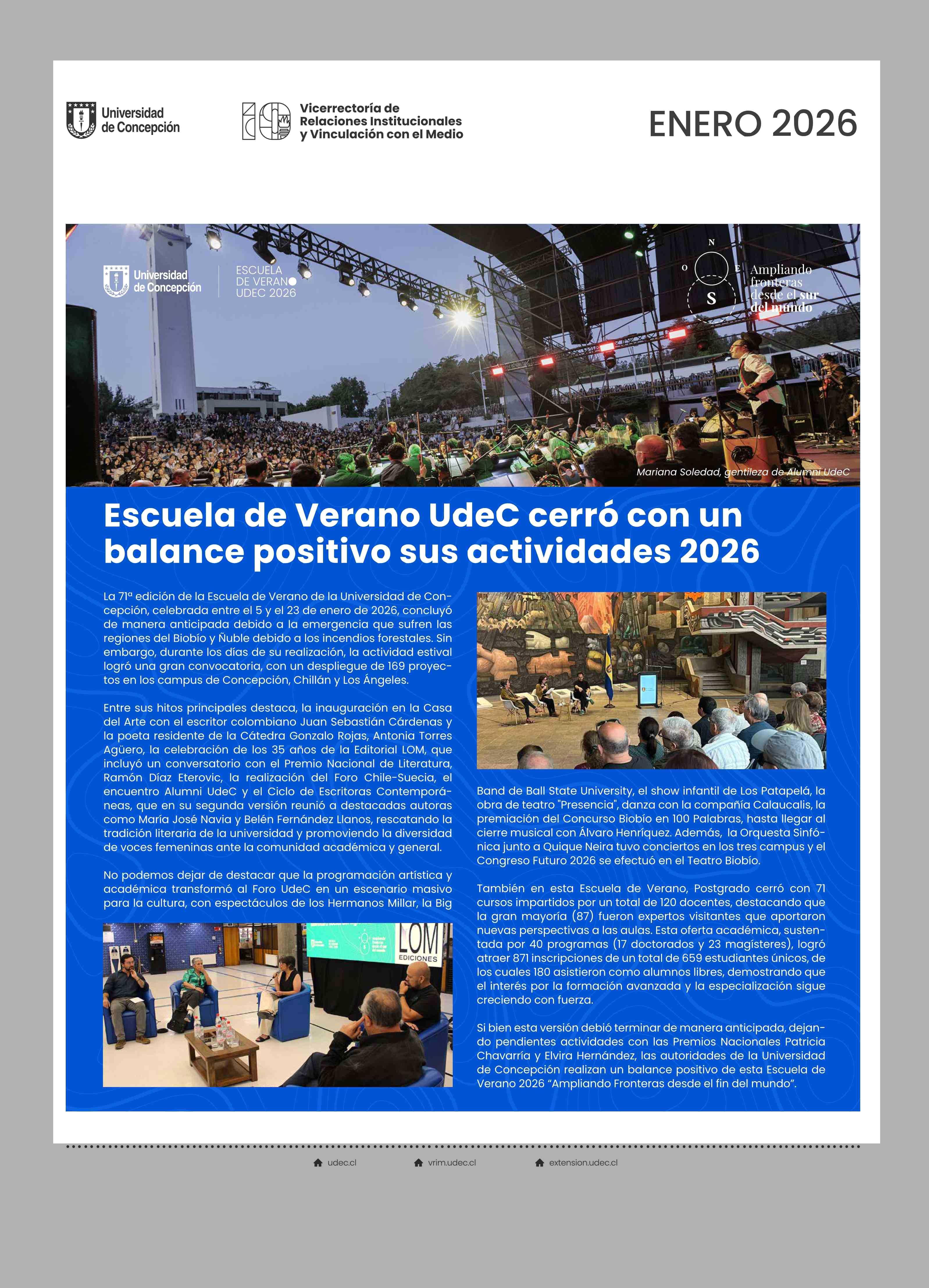 Escuela de Verano UdeC cerró con un balance positivo sus actividades 2026 24-01-2026 Diario Concepción |
